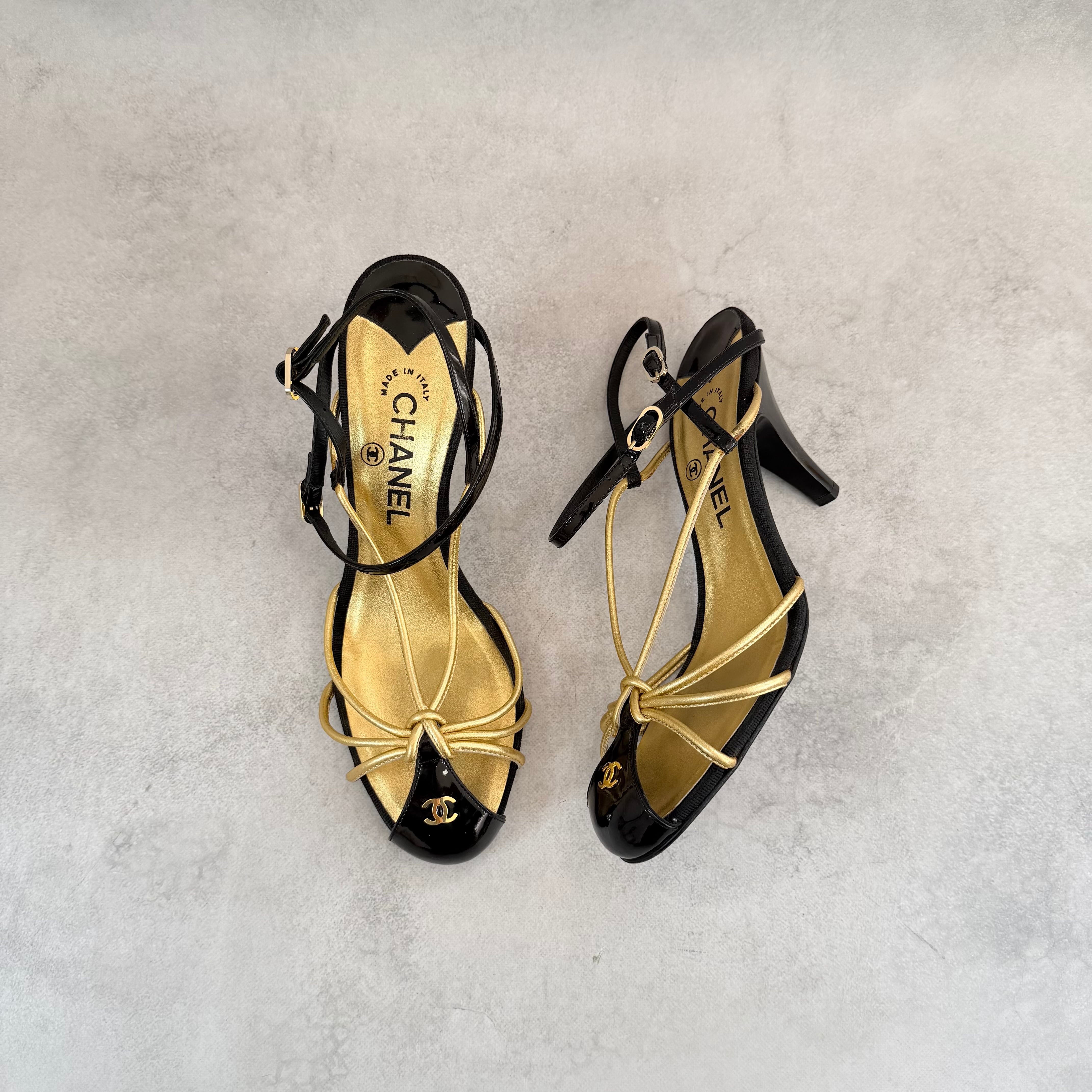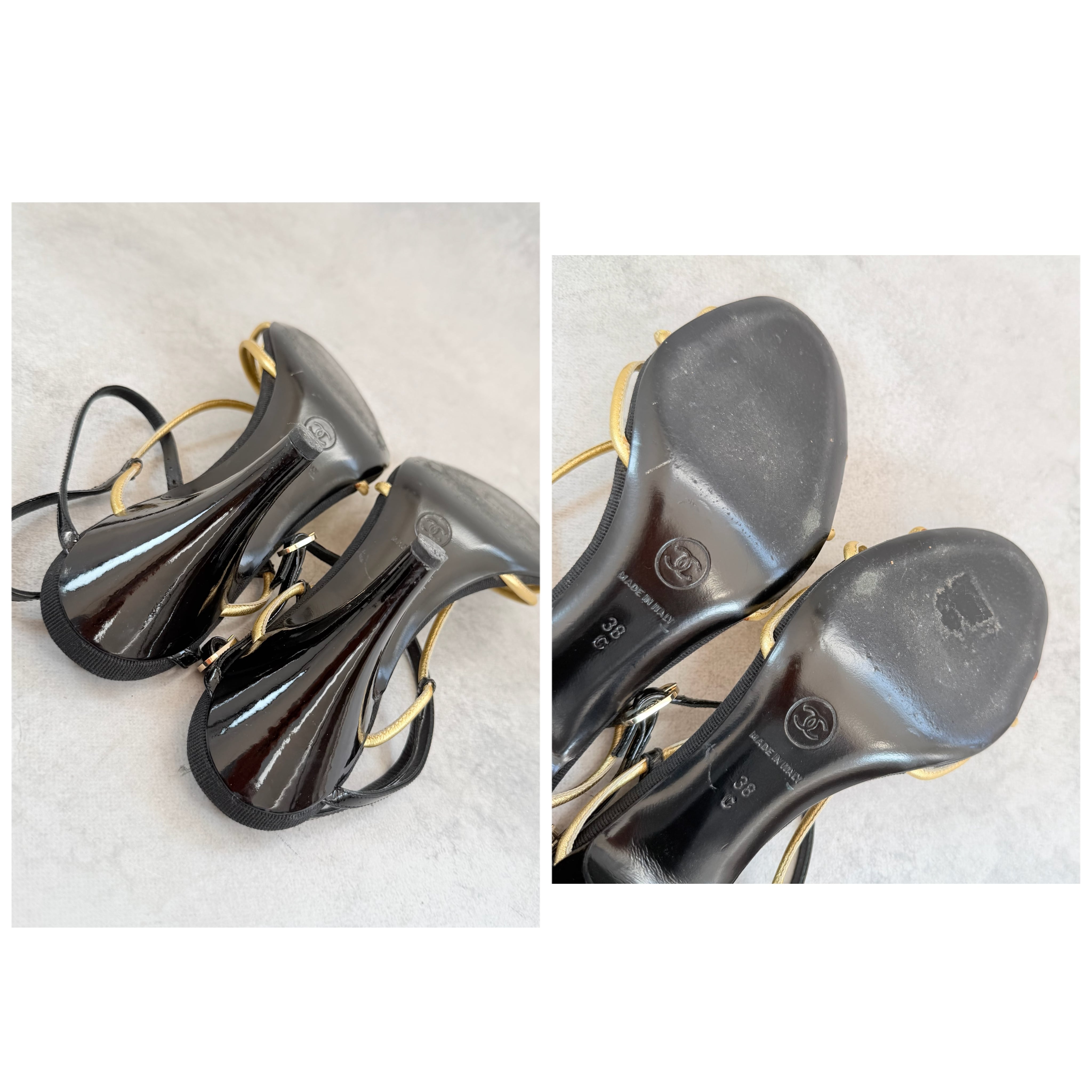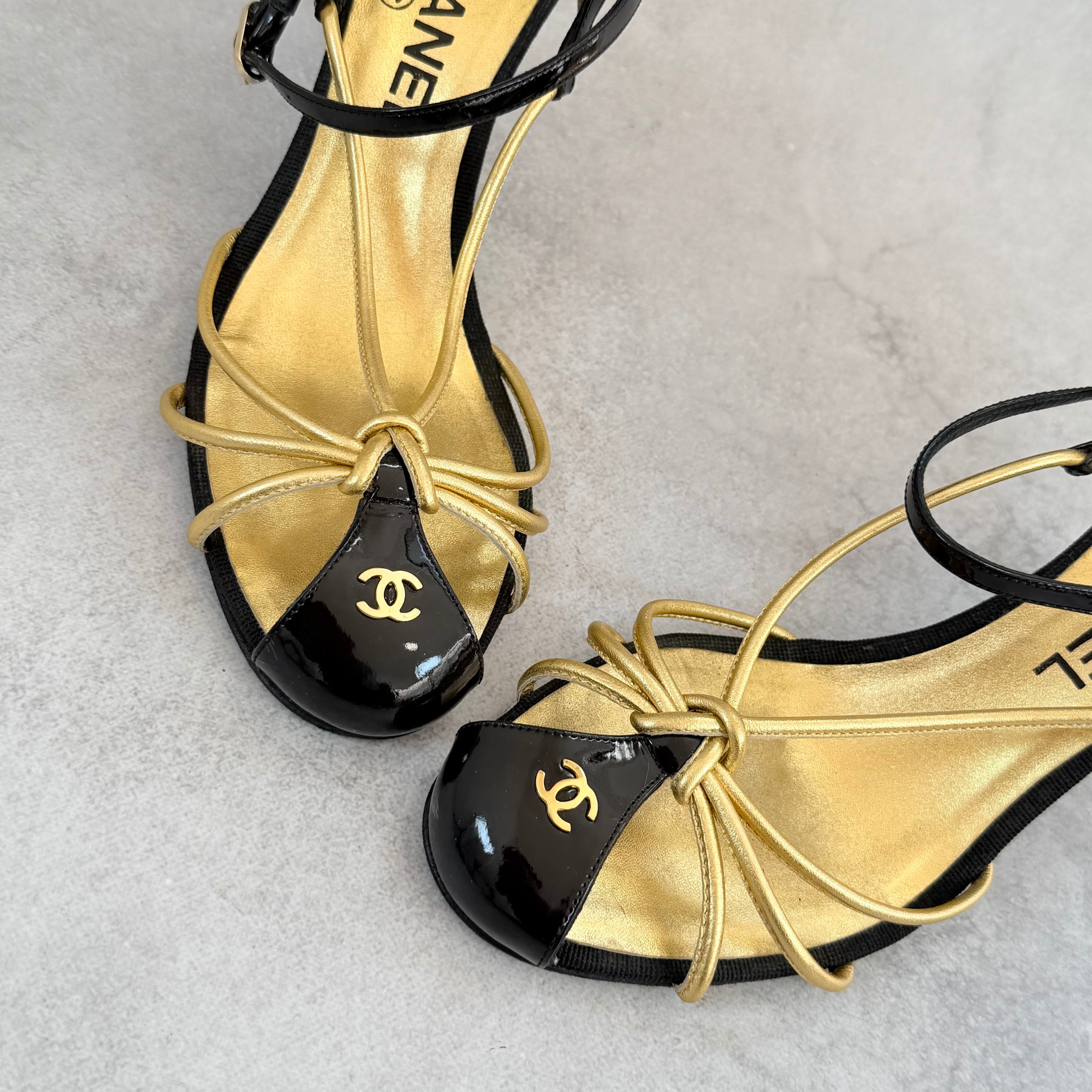 Vintage Chanel Black Gold Sandals