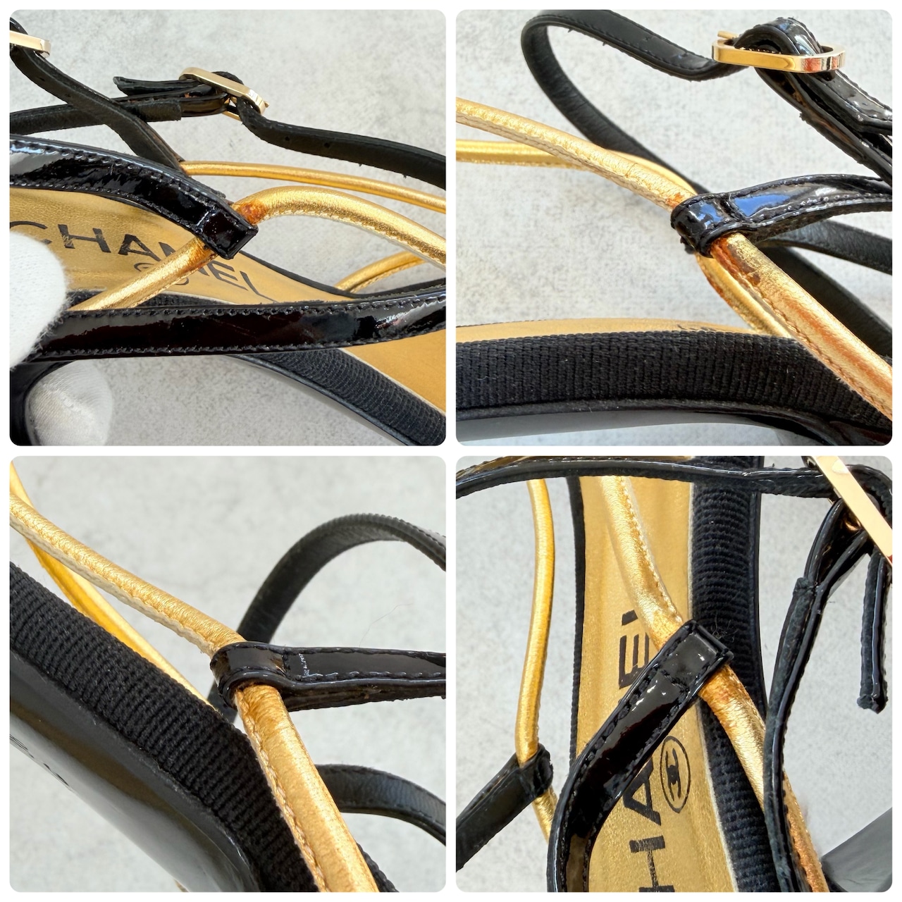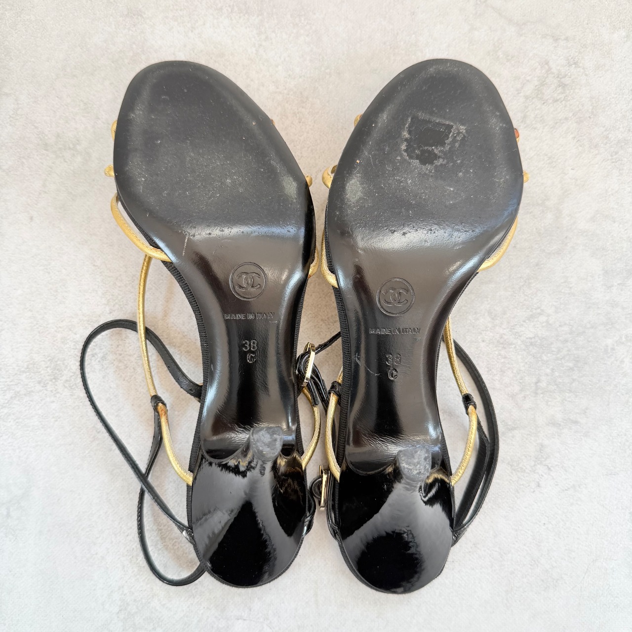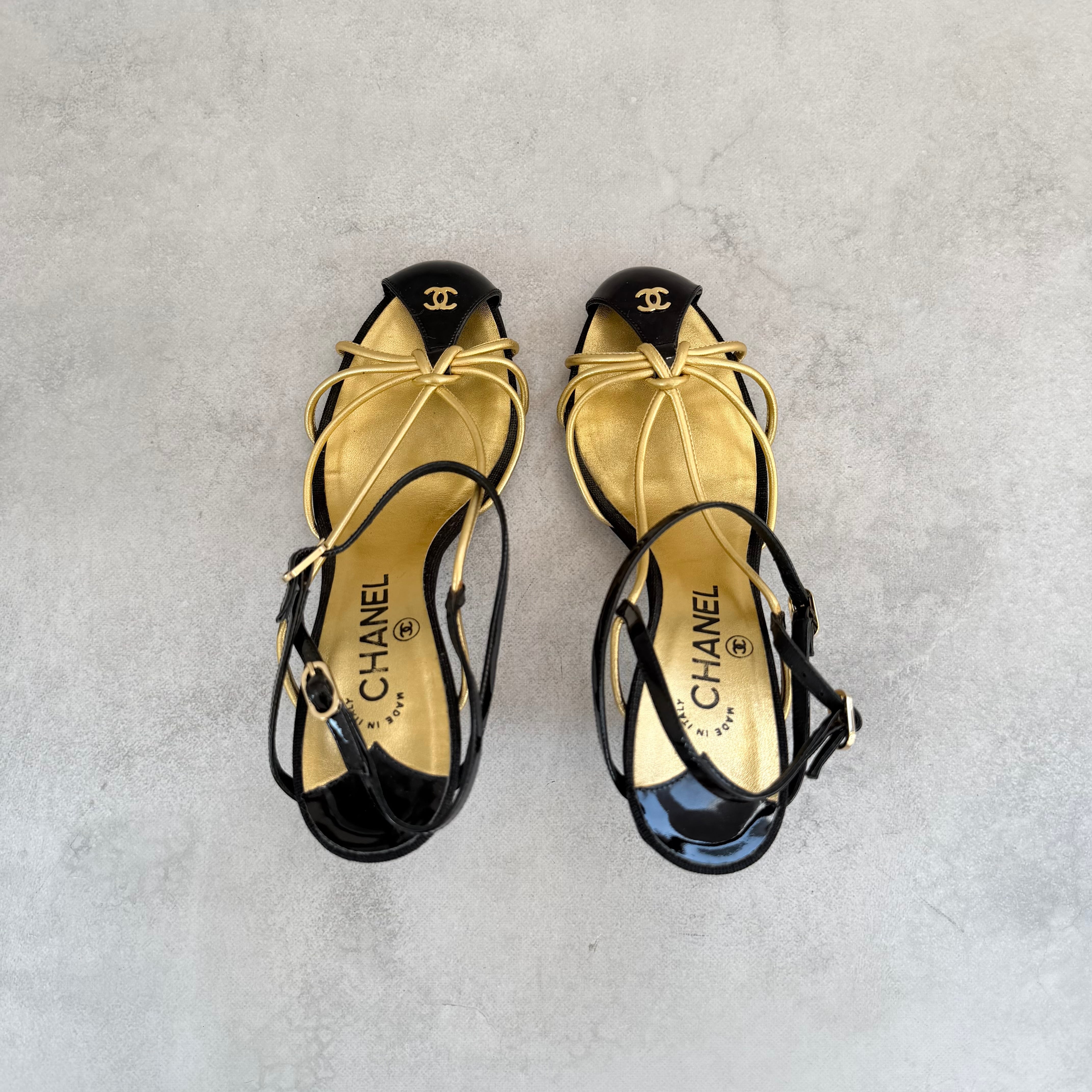 Vintage Chanel Black Gold Sandals
