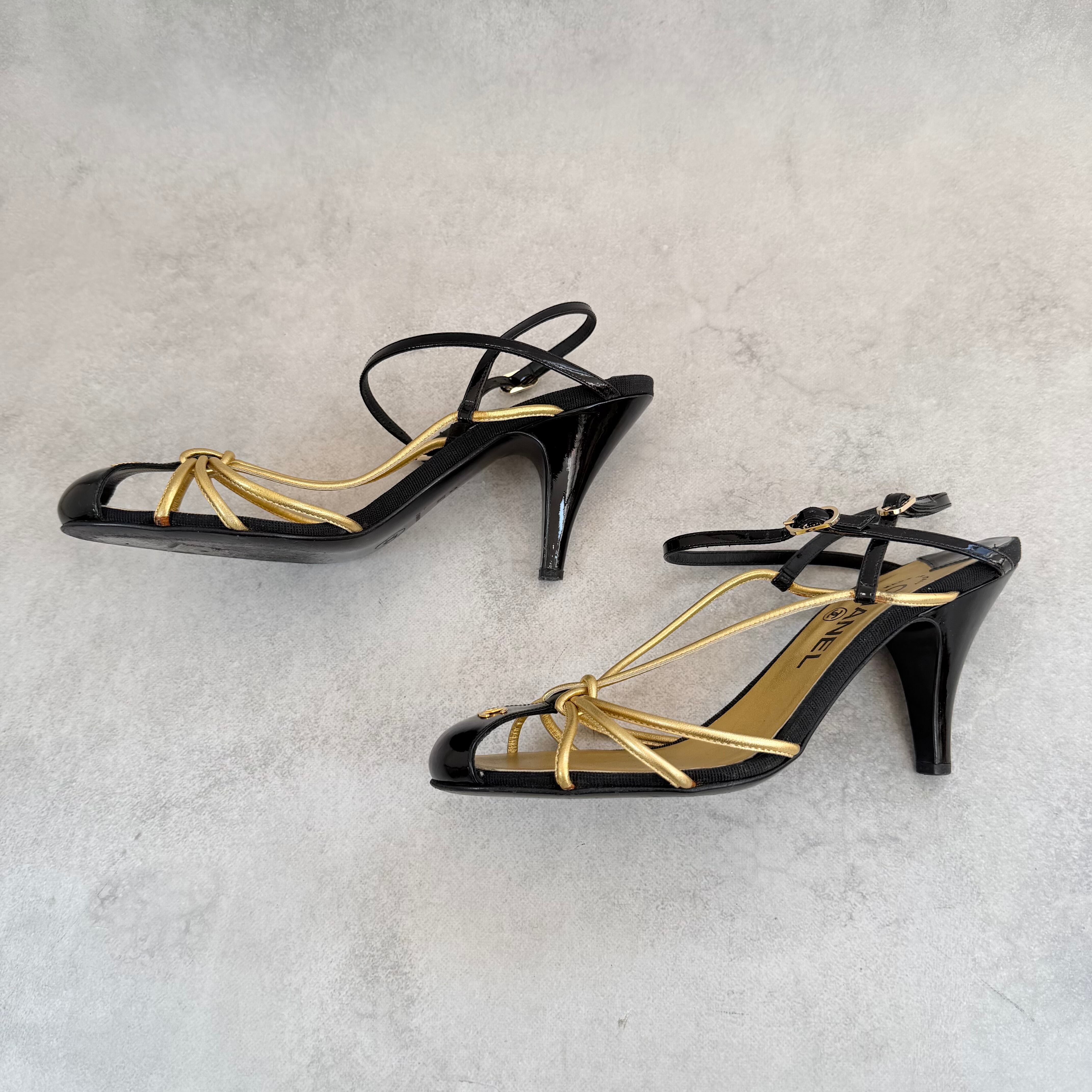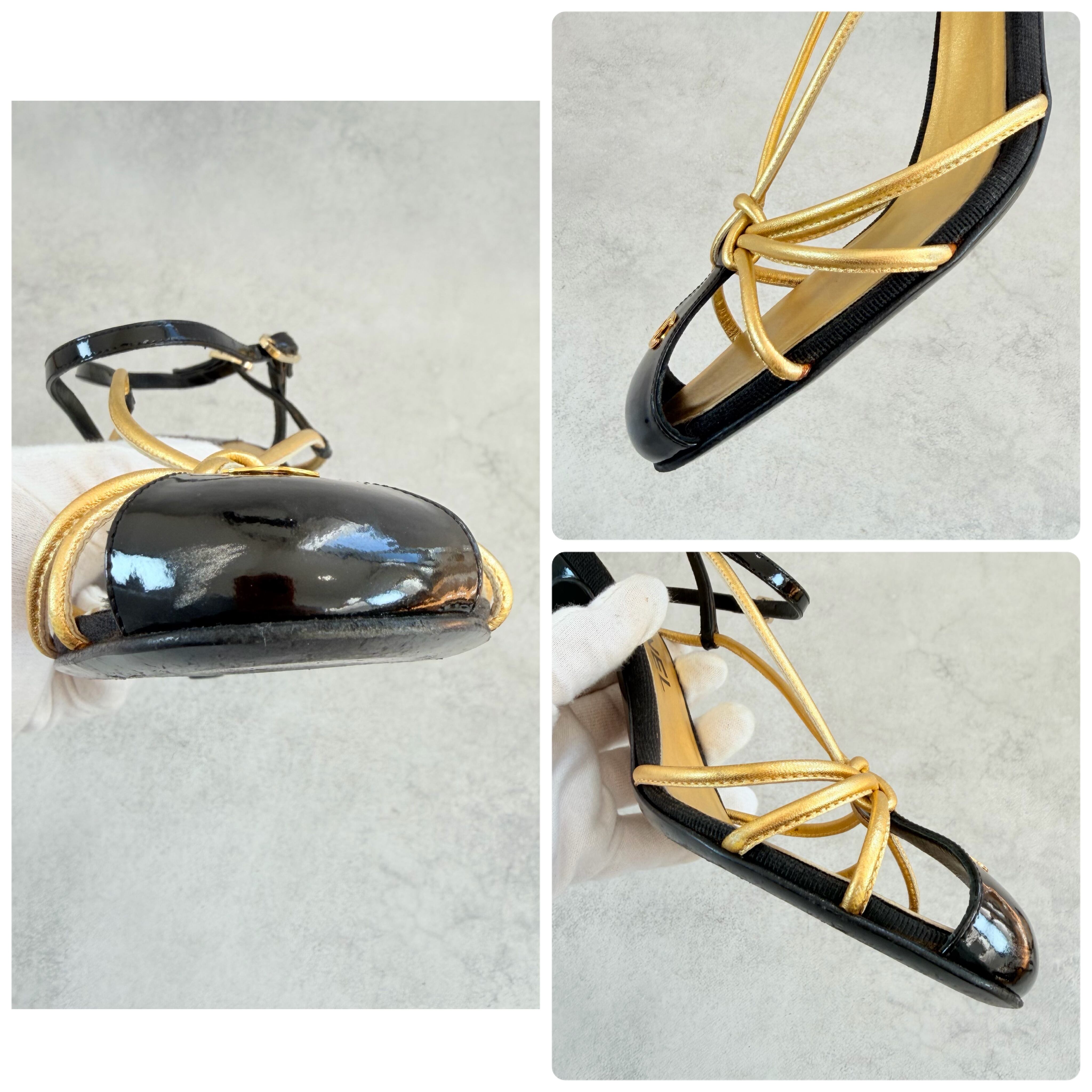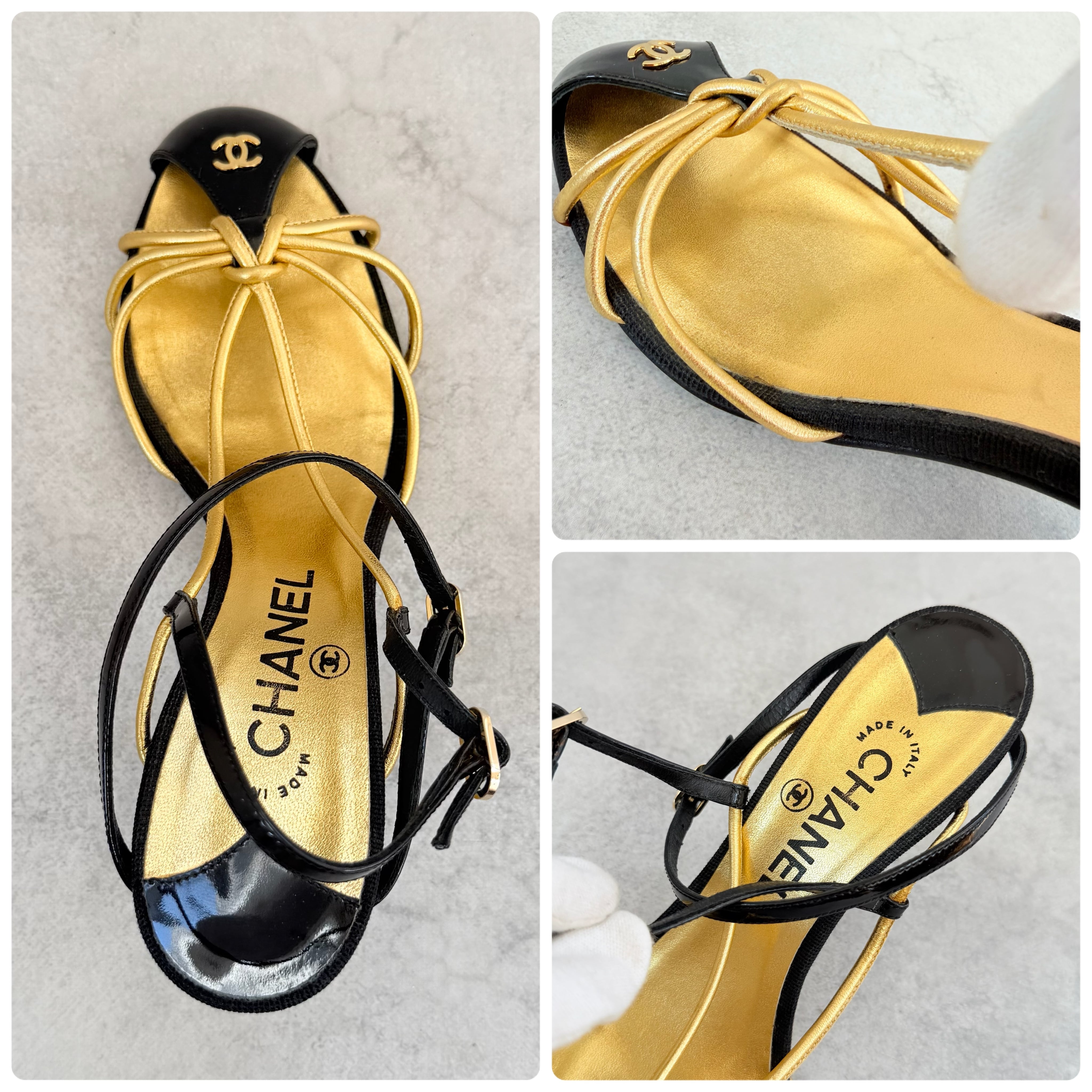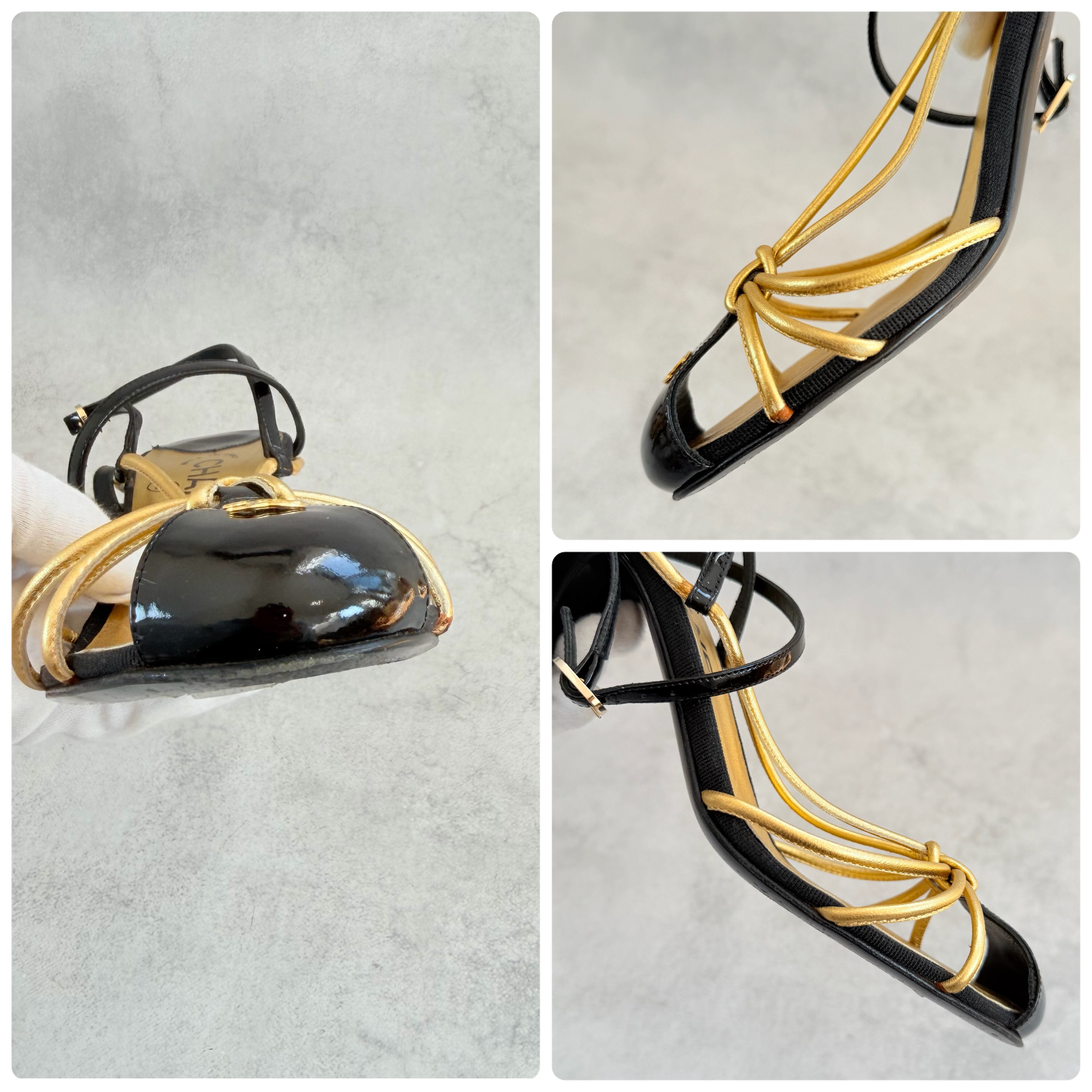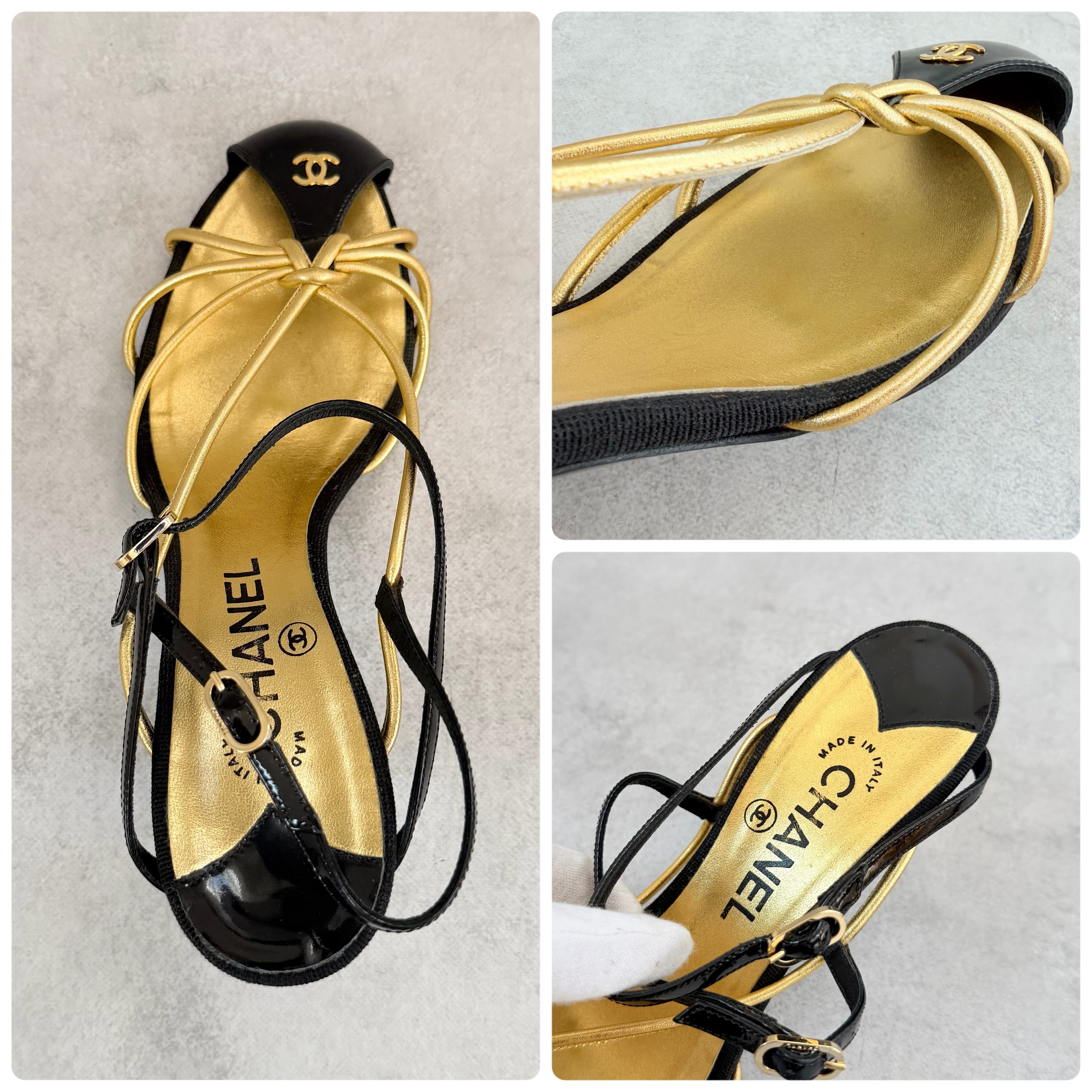 Vintage Chanel Black Gold Sandals 38