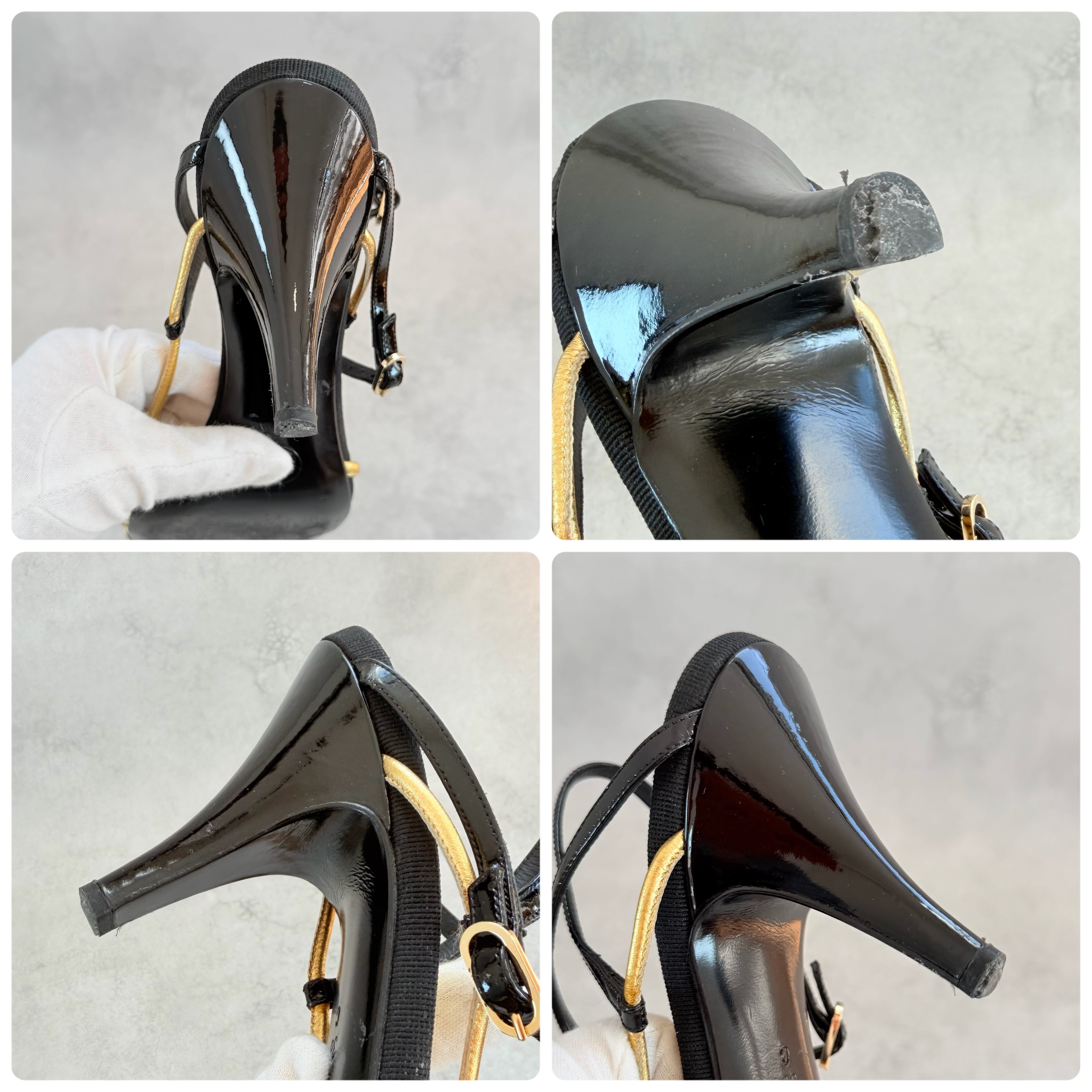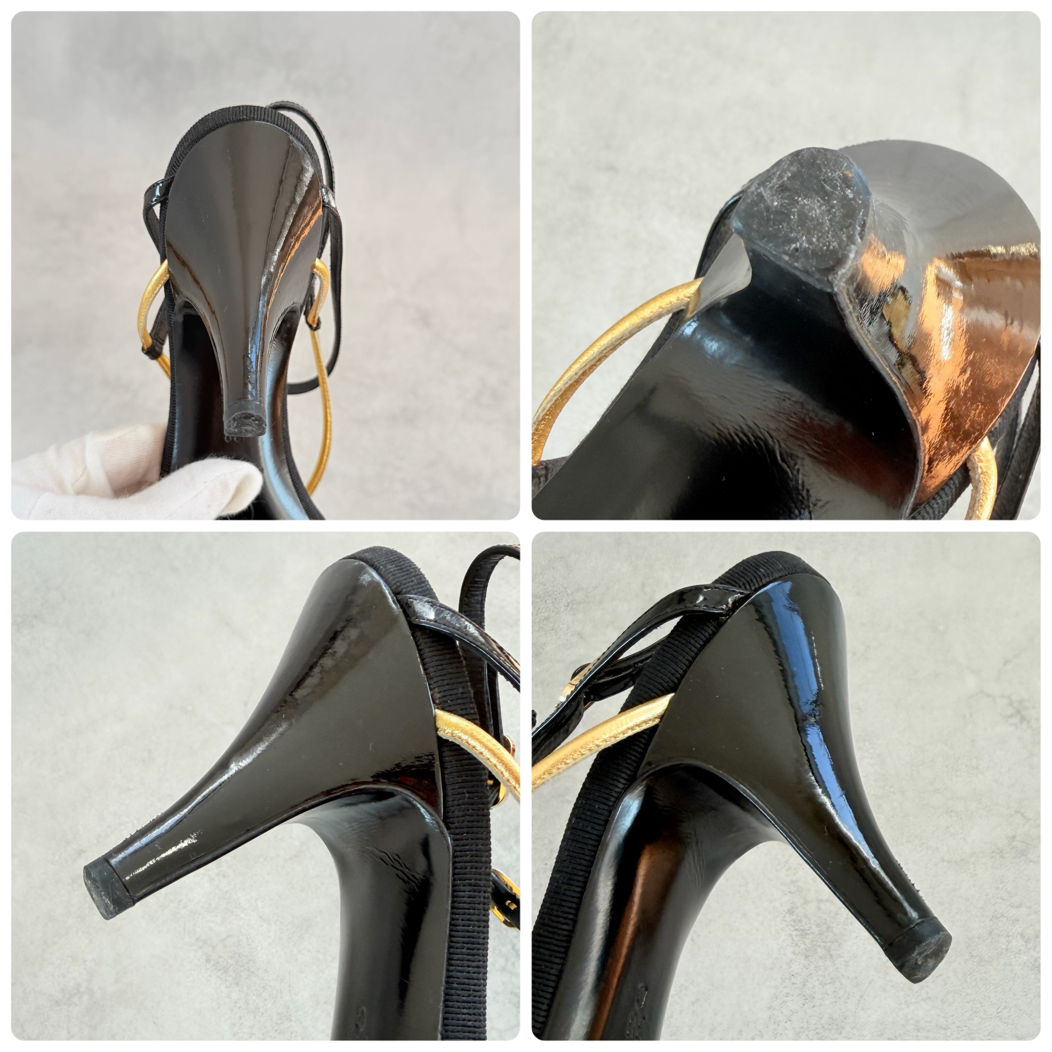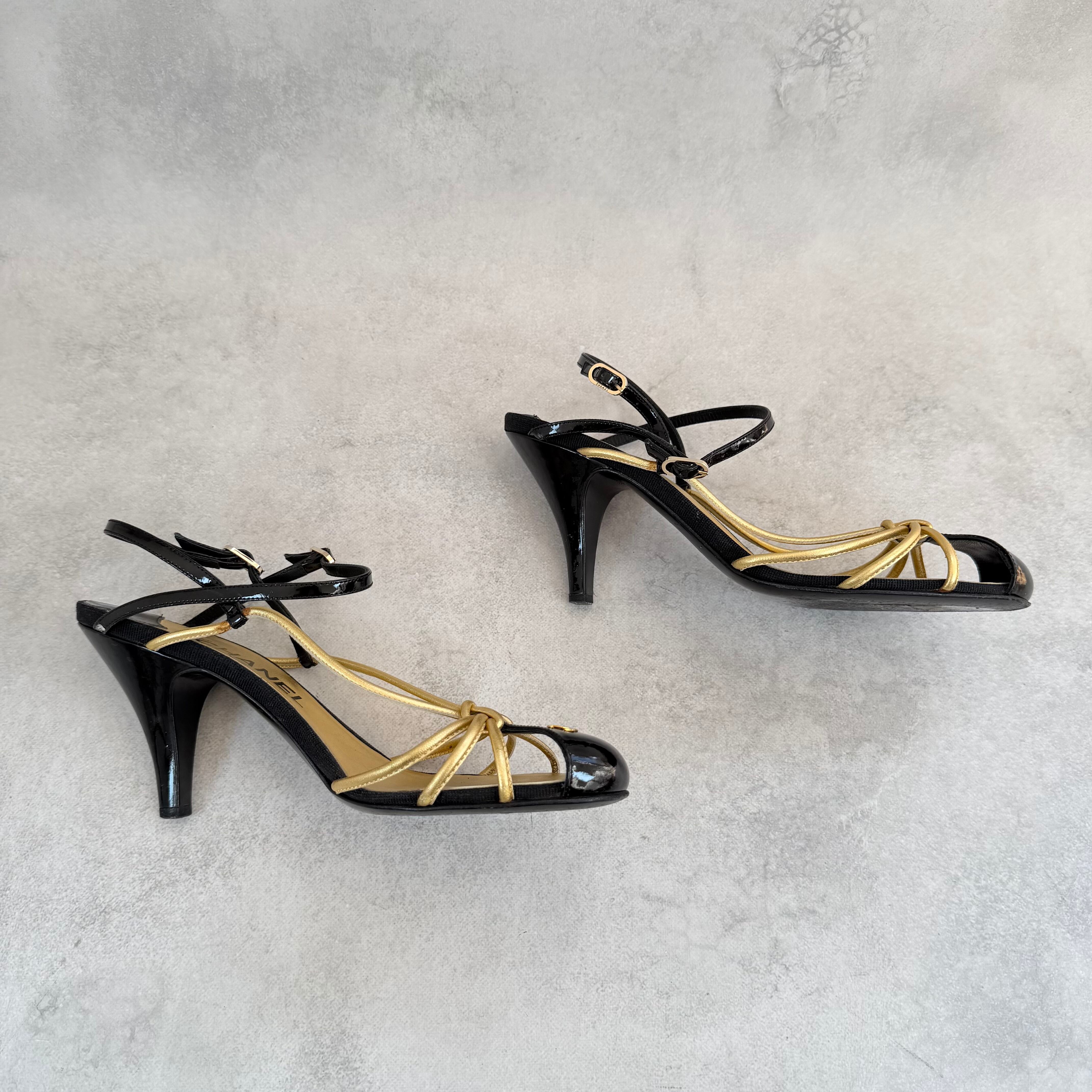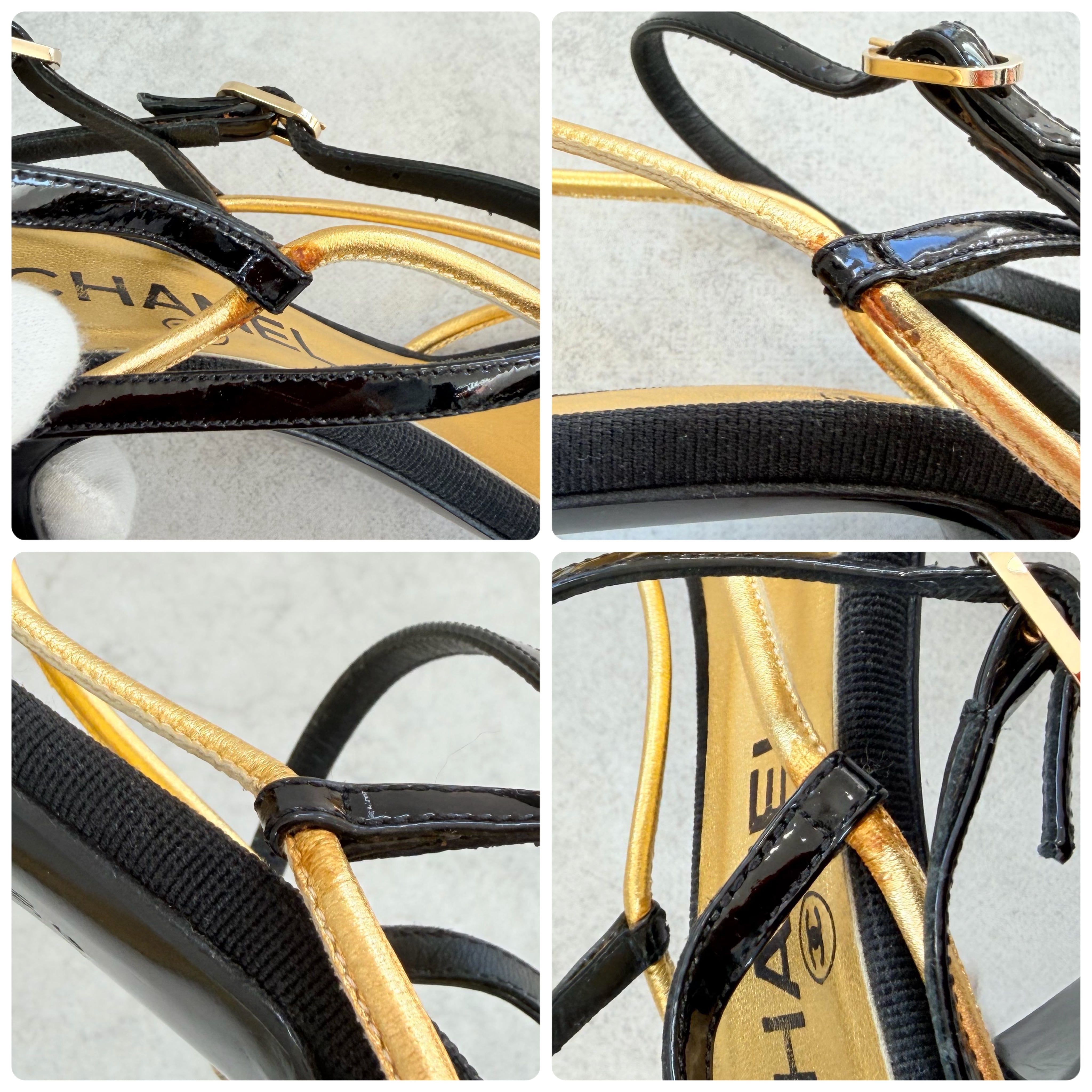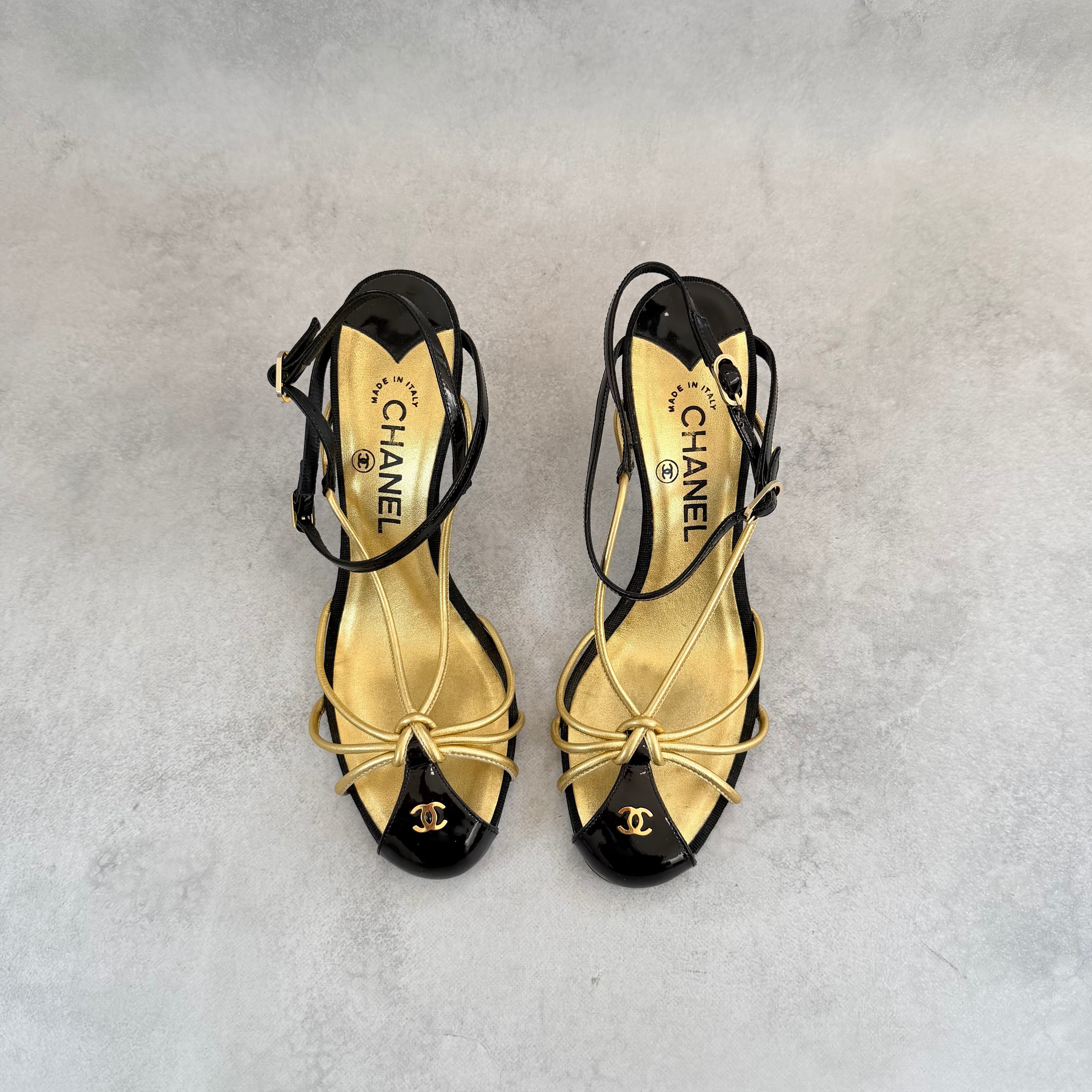 Vintage Chanel Black Gold Sandals 38