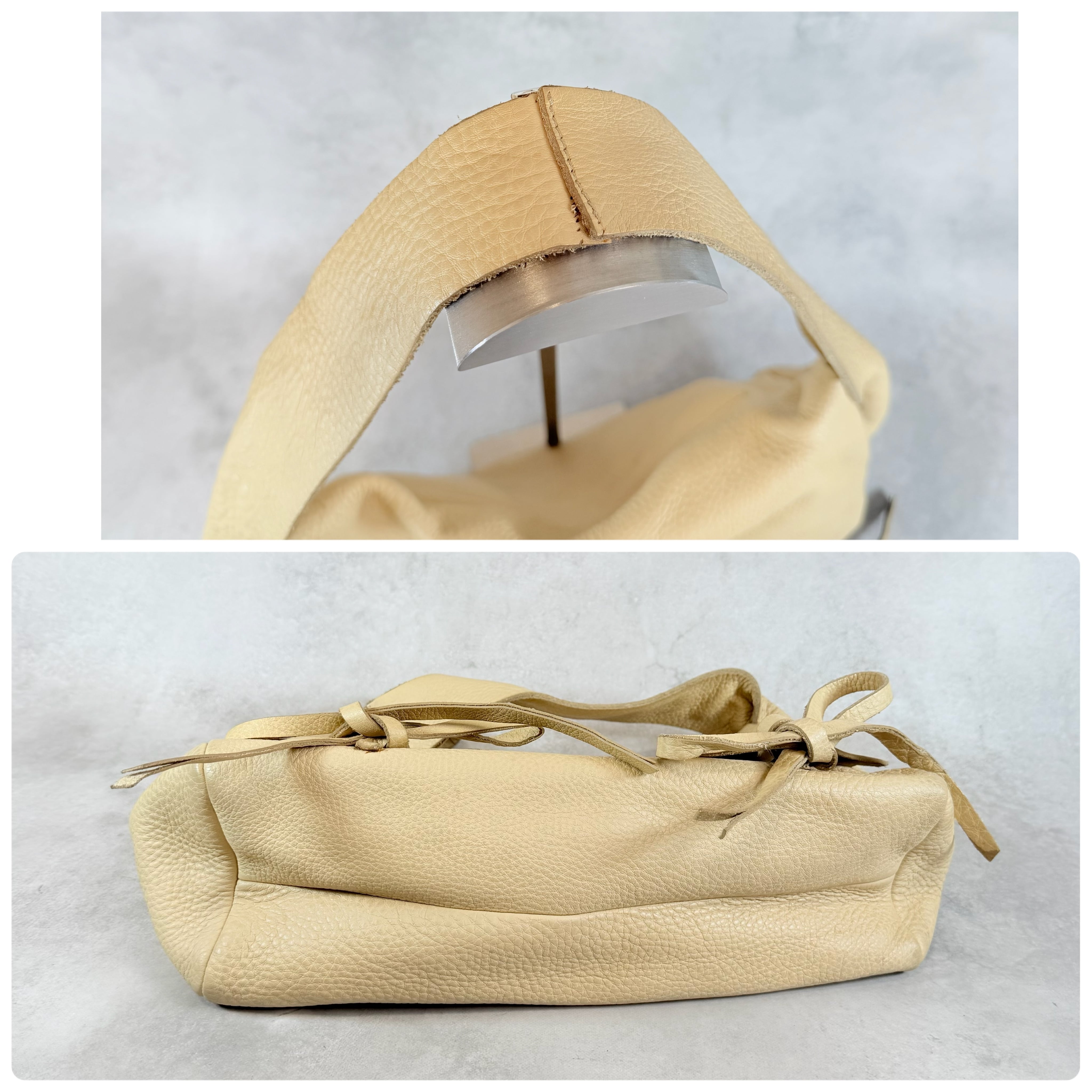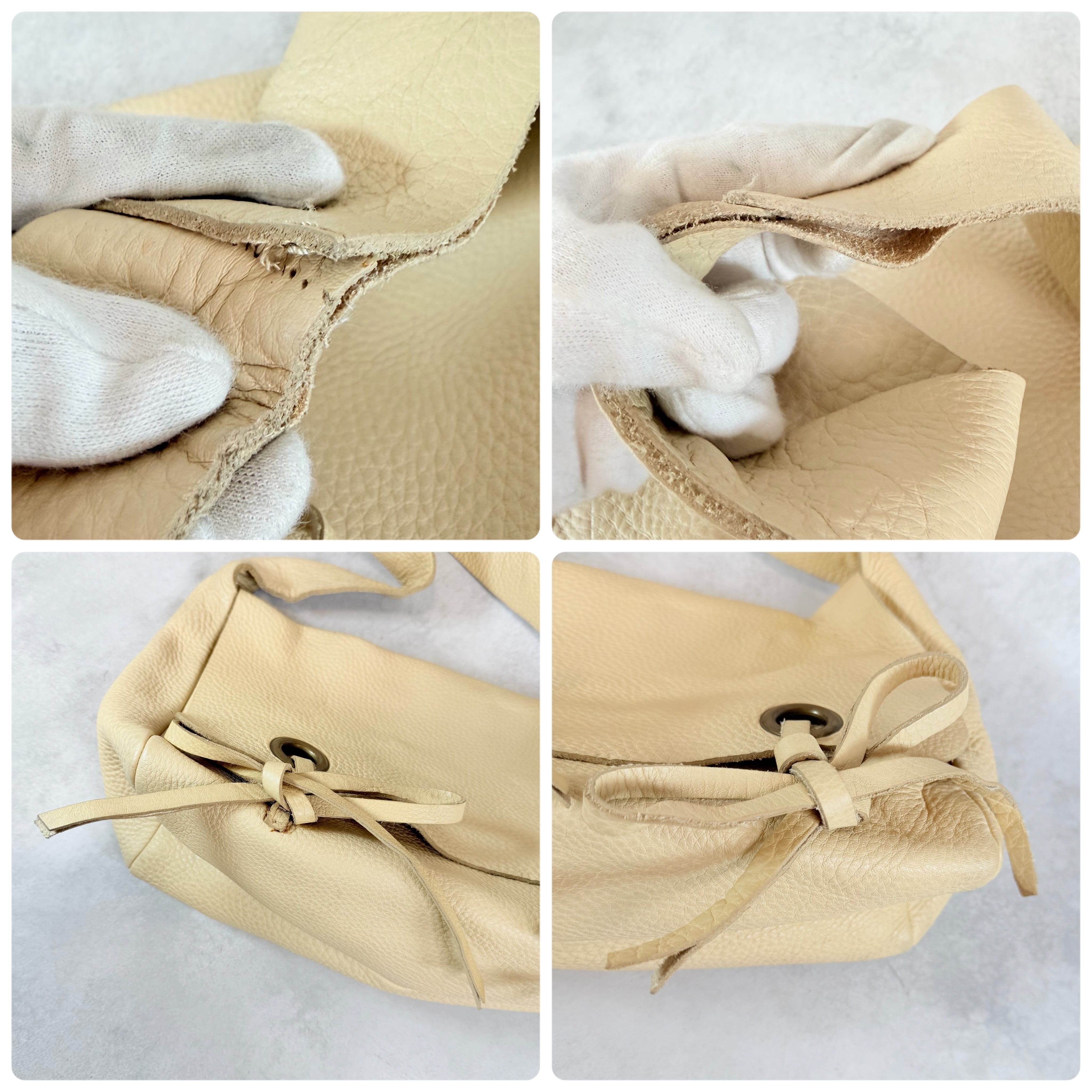 持ち手中央縫い目取れ箇所がありそれに沿って両面剥がれ箇所ございます。