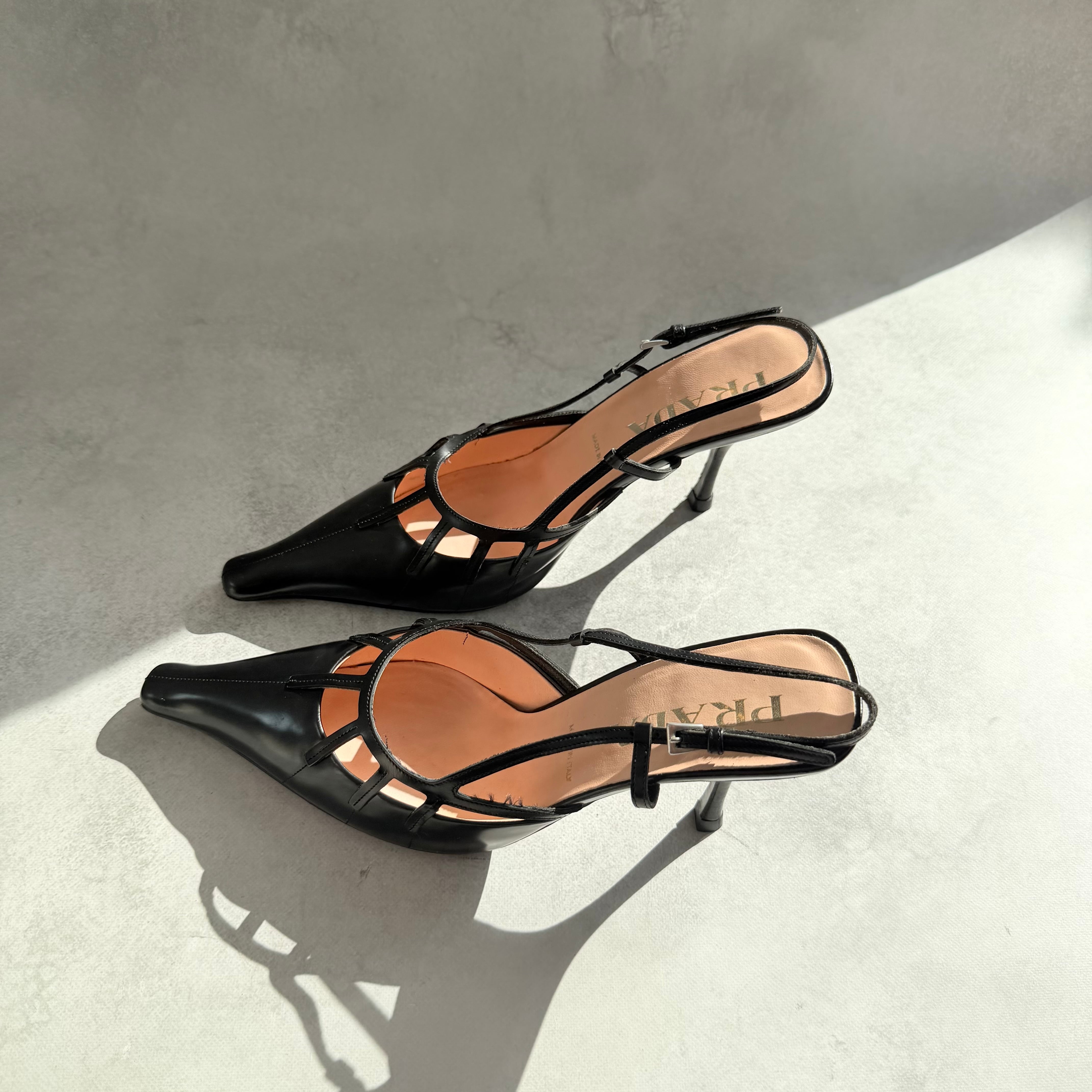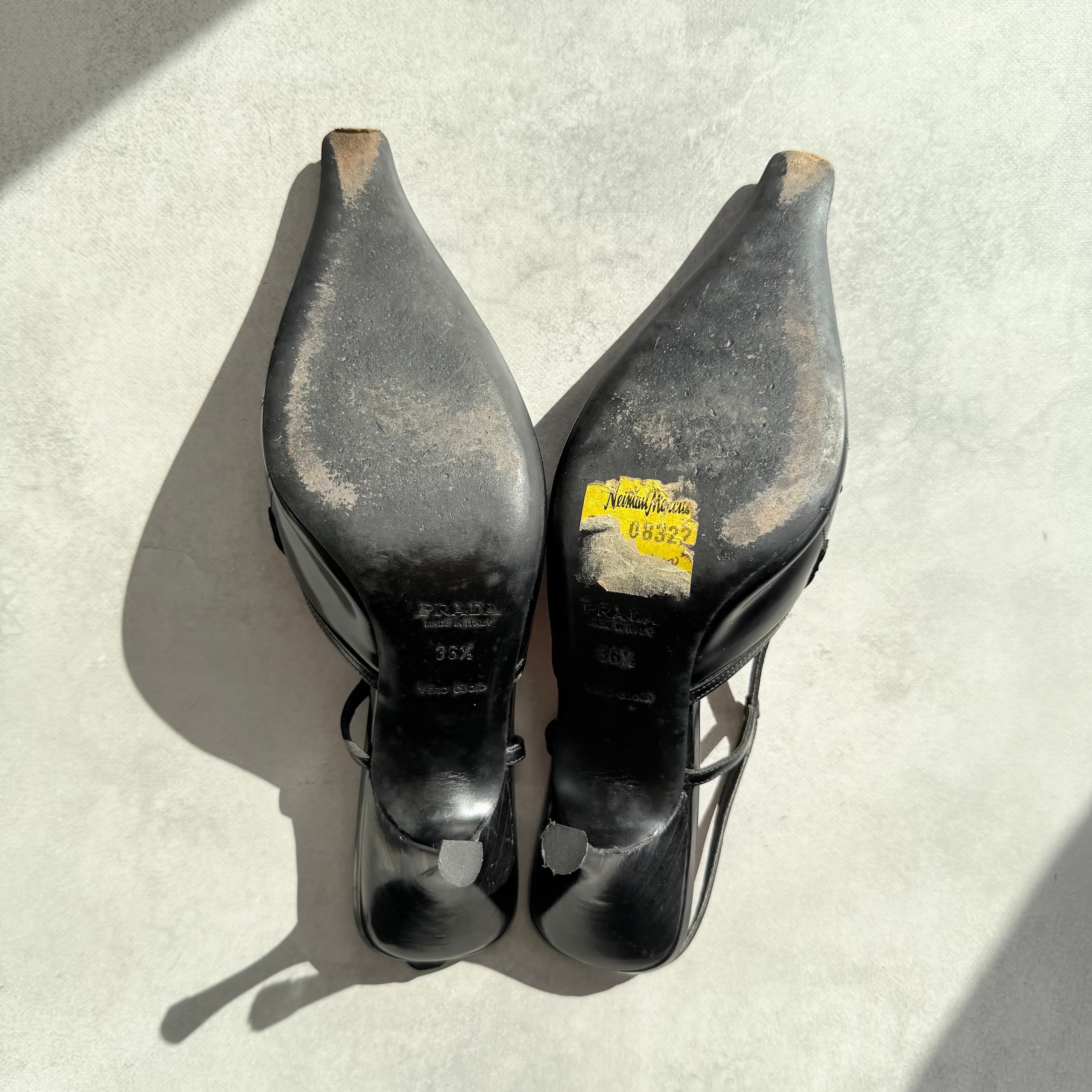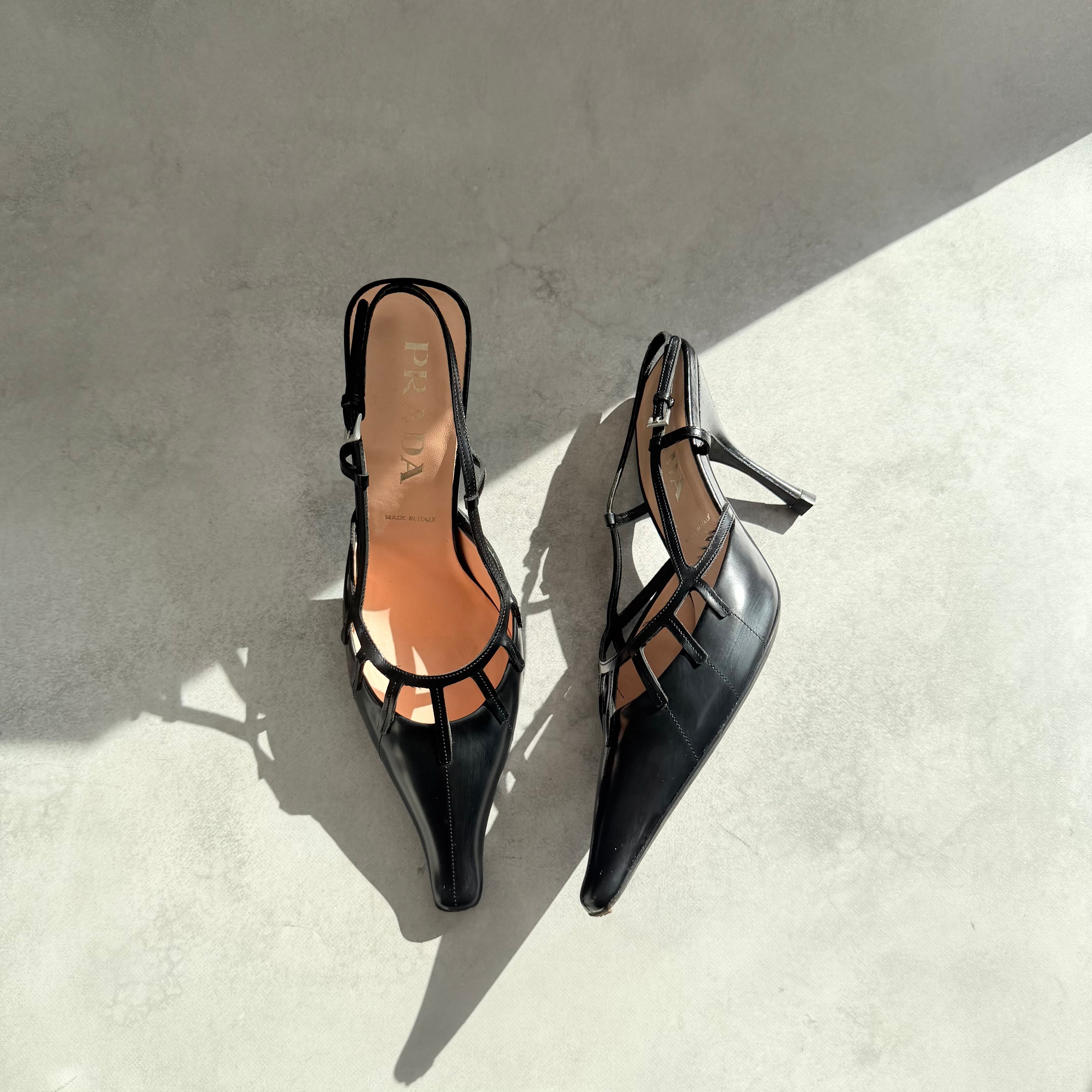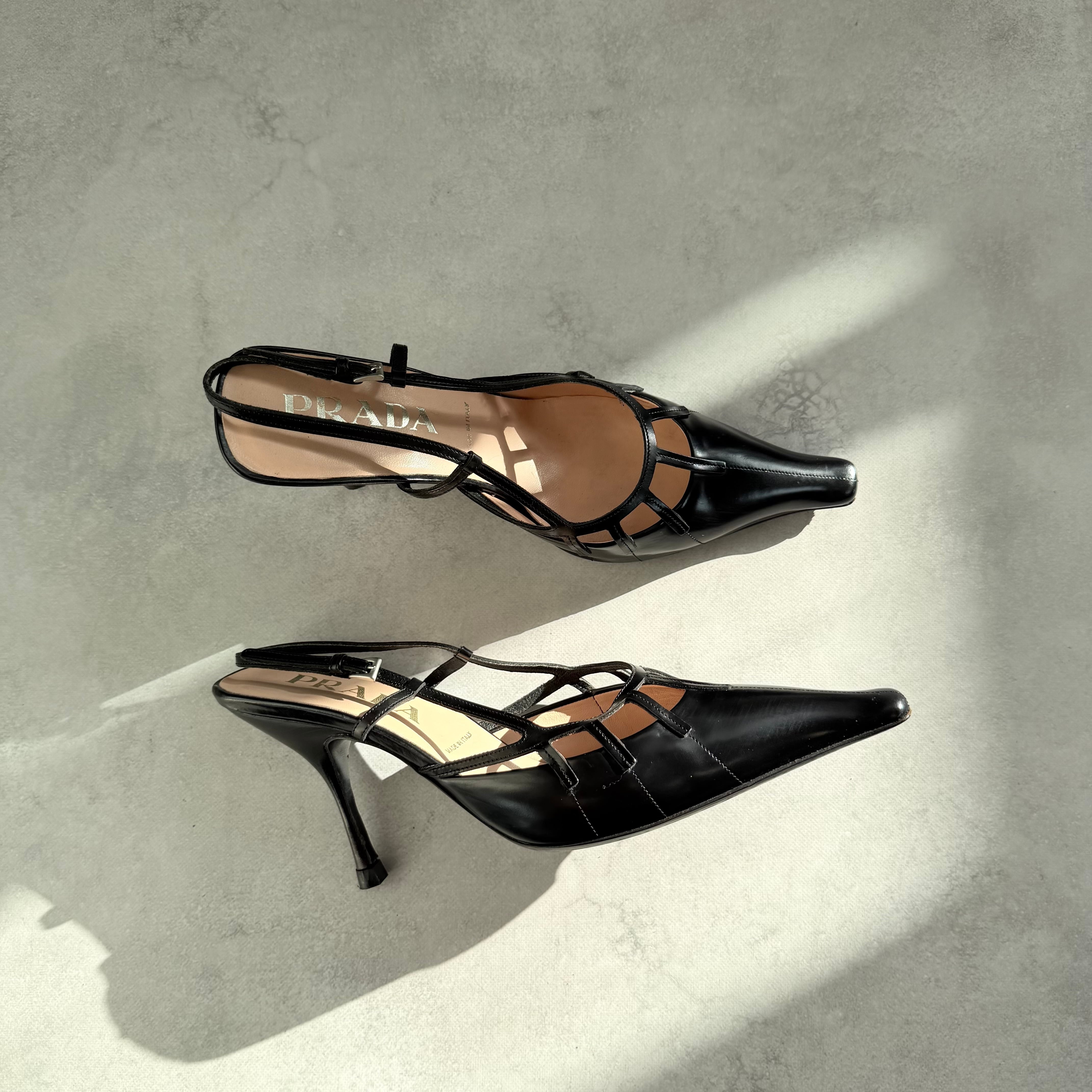Prada Black Leather Slingback Heels