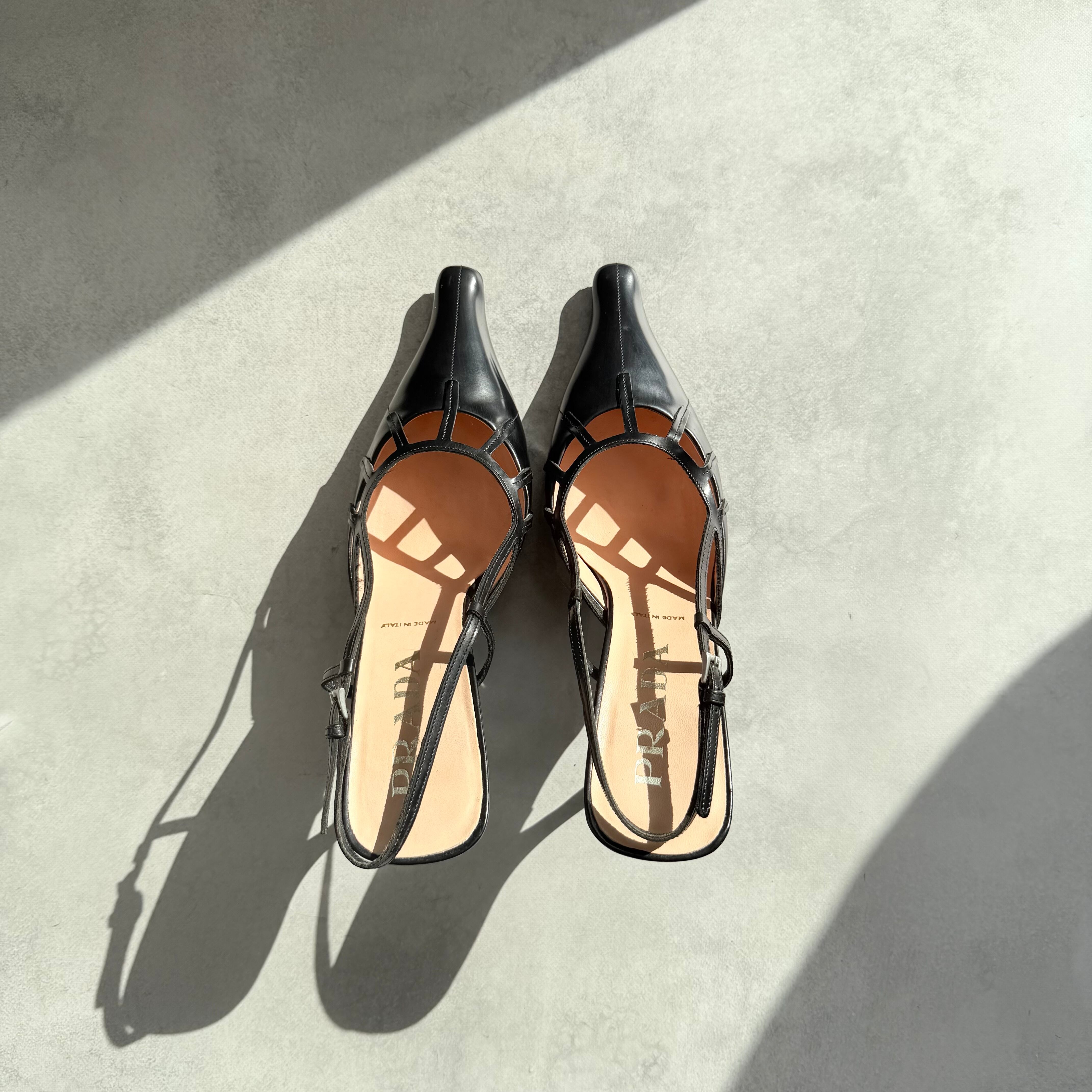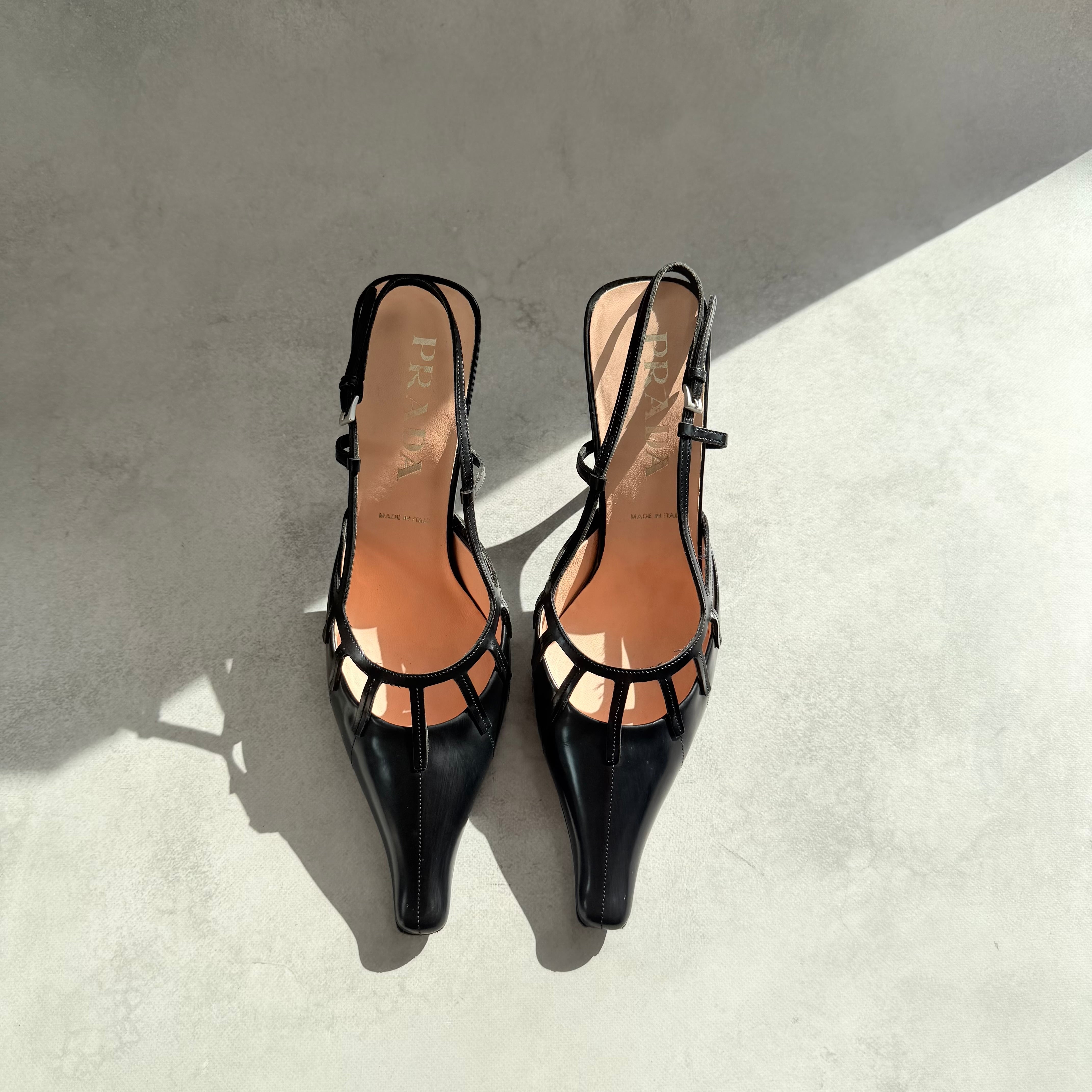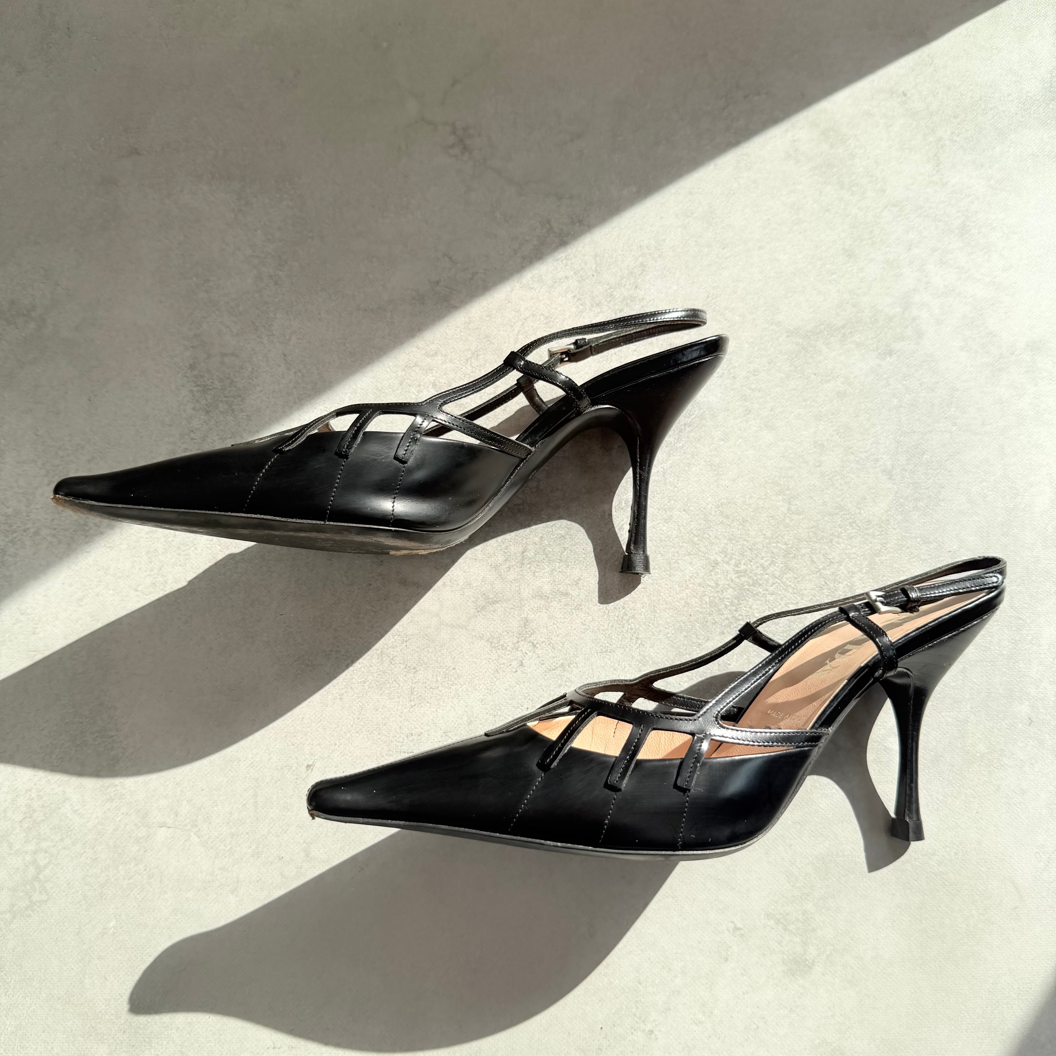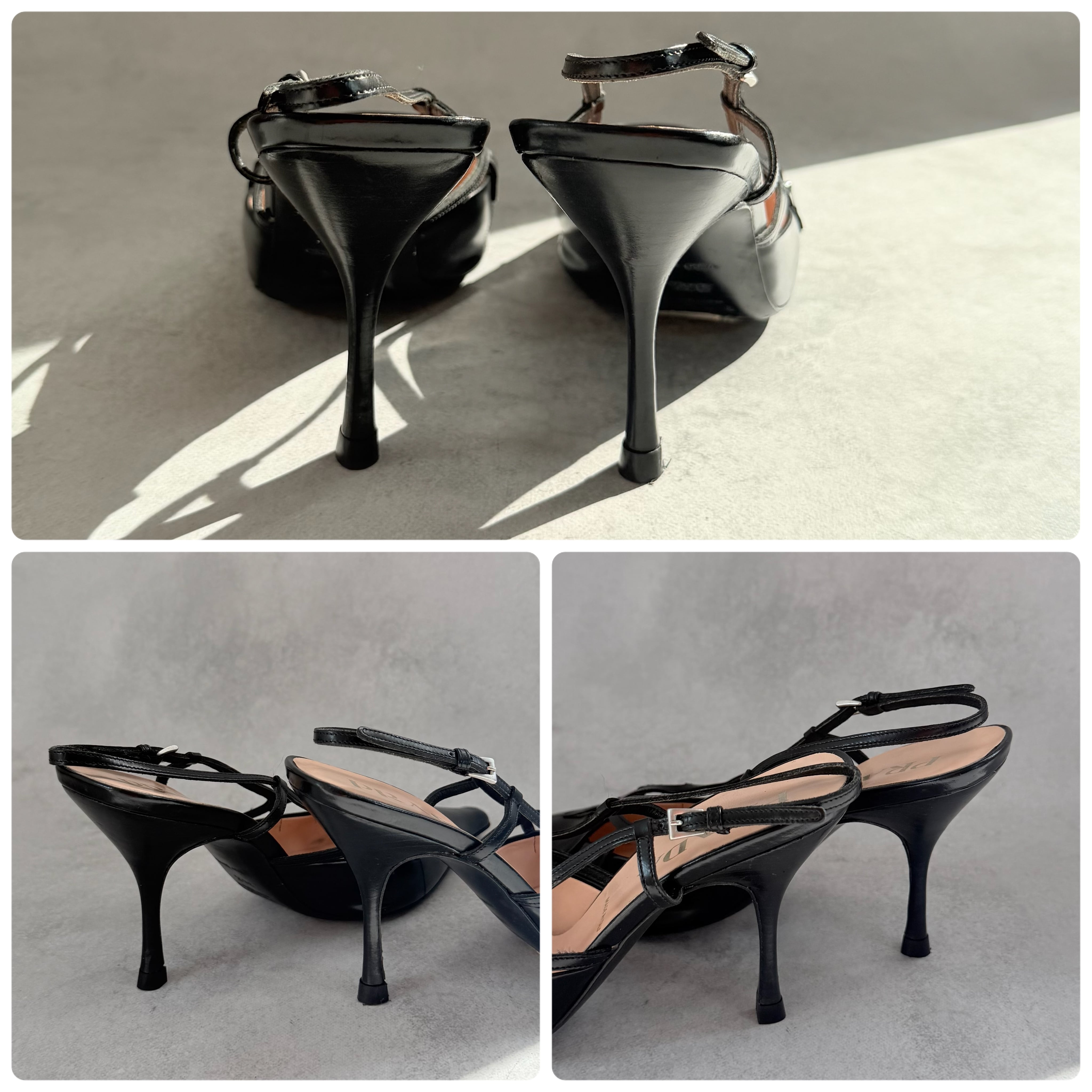 Prada Black Leather Slingback Heels