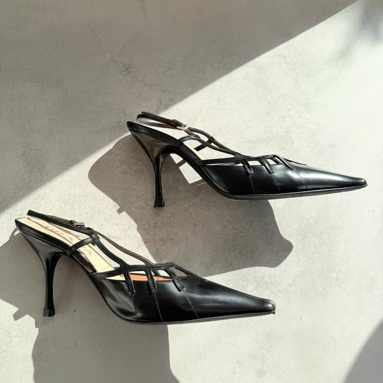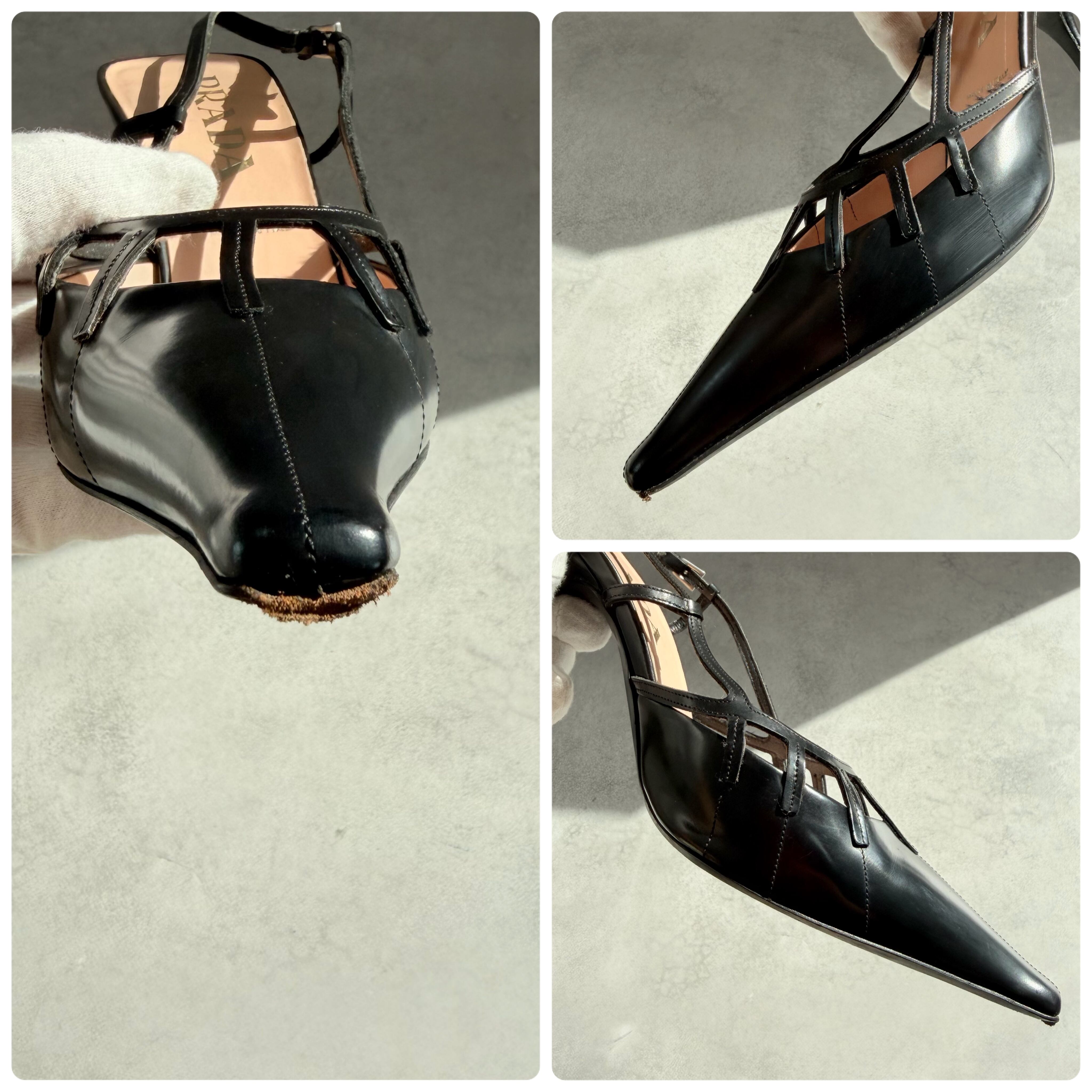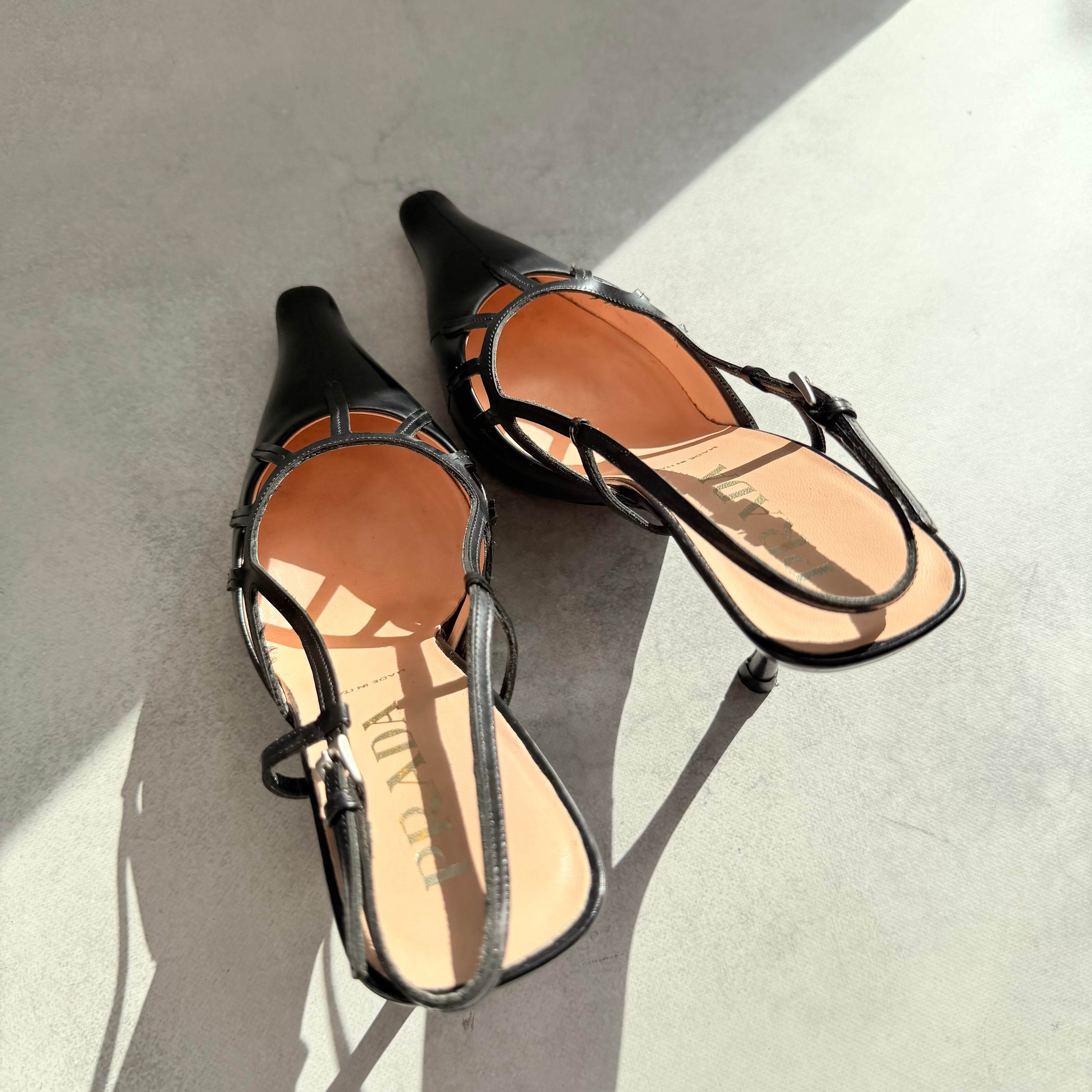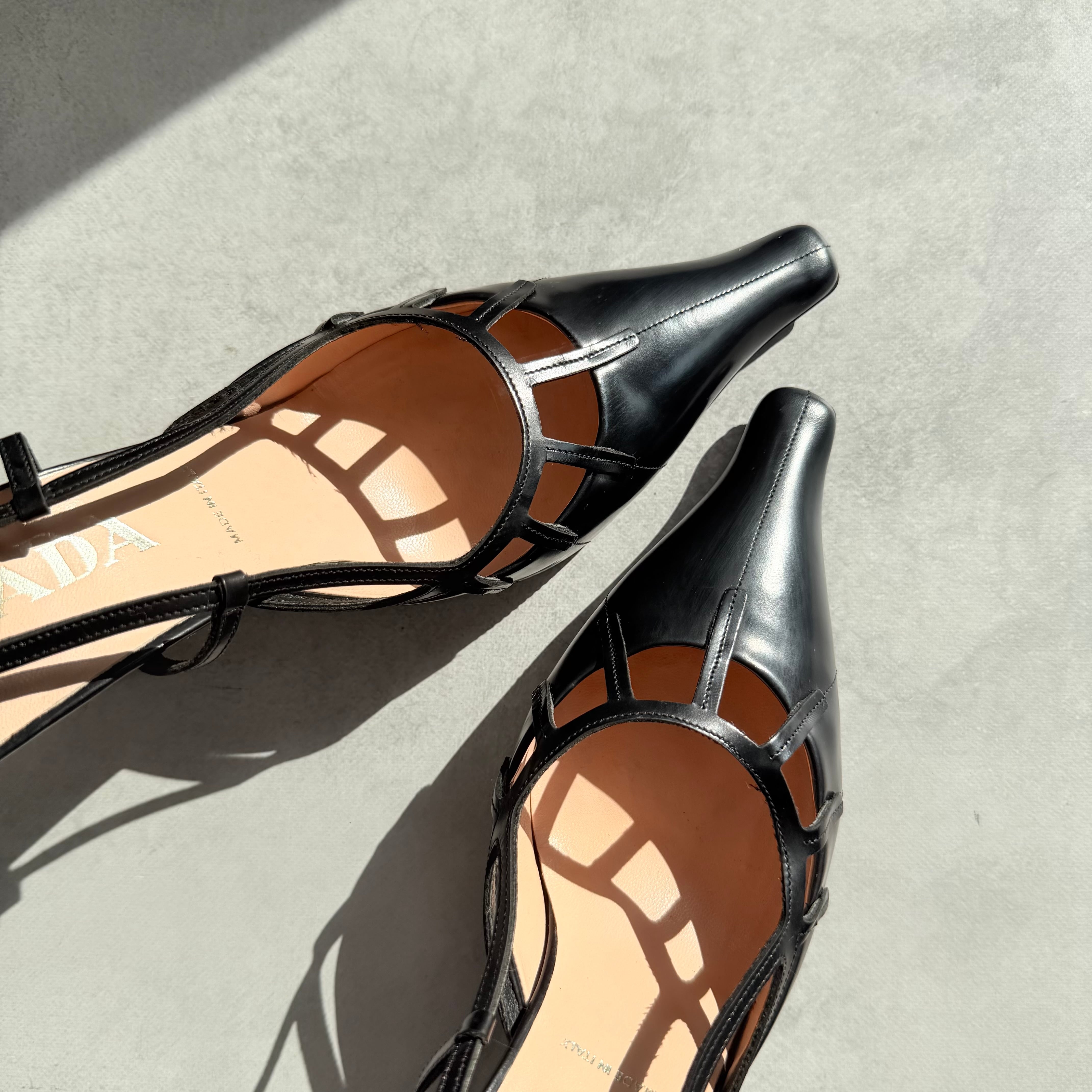 Prada Black Leather Slingback Heels