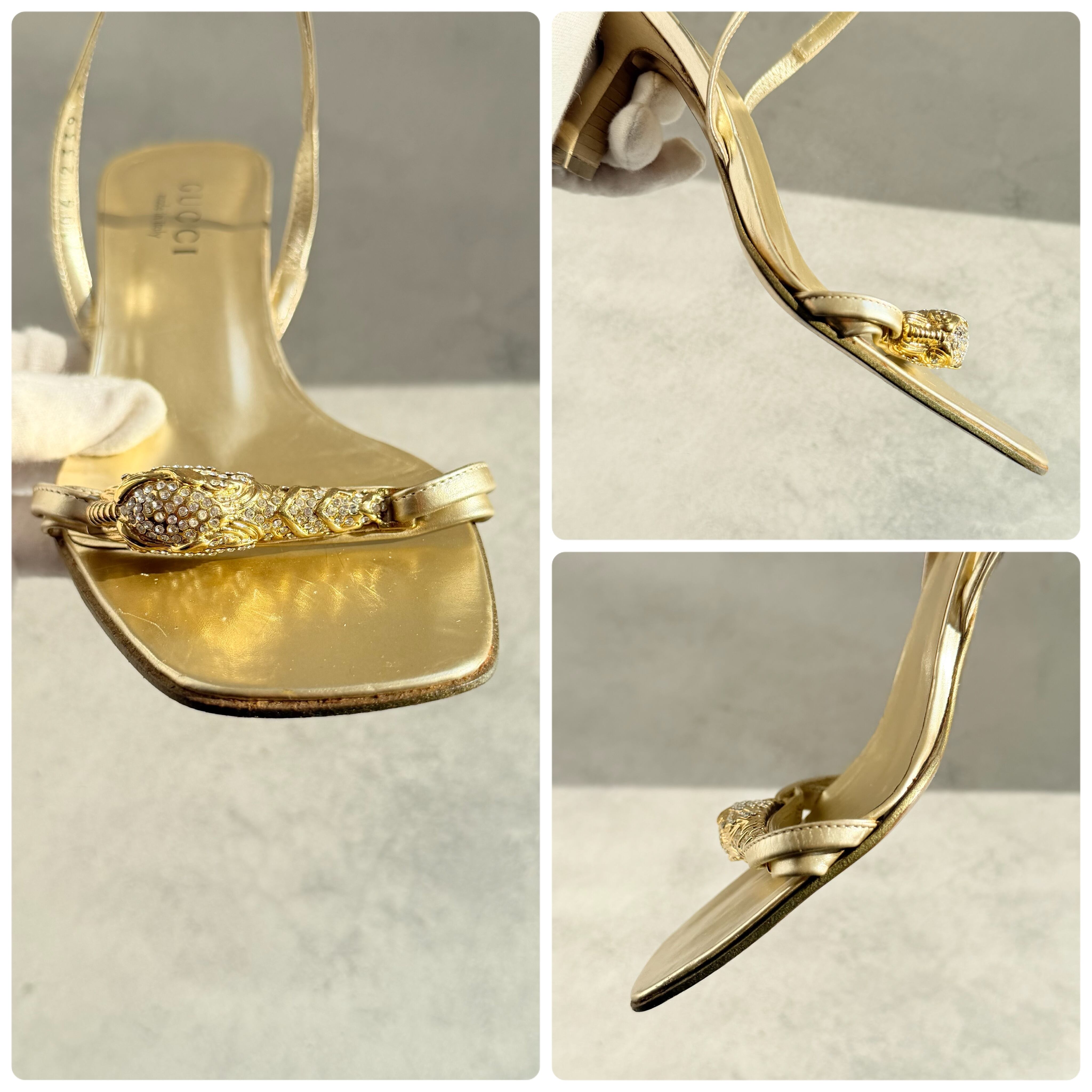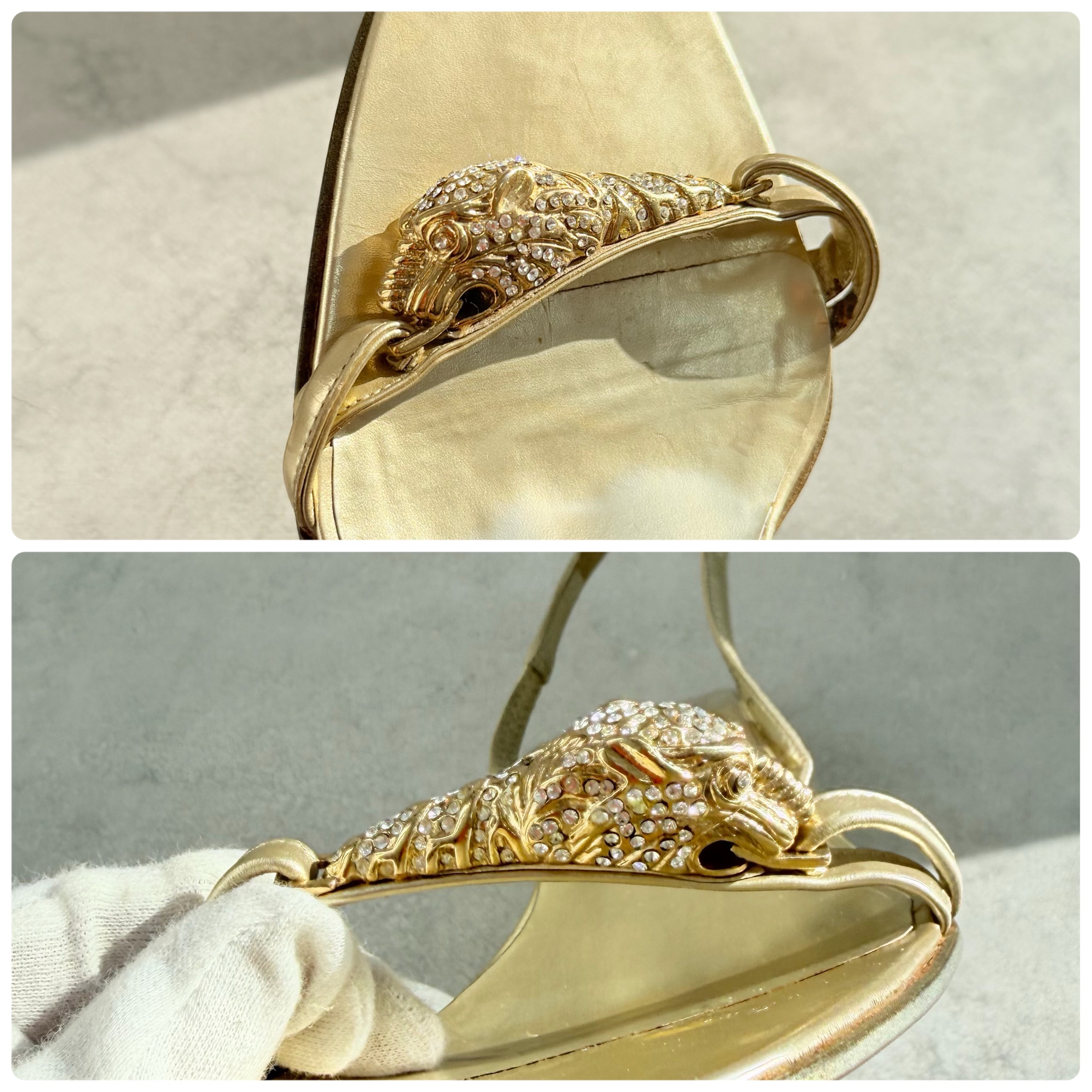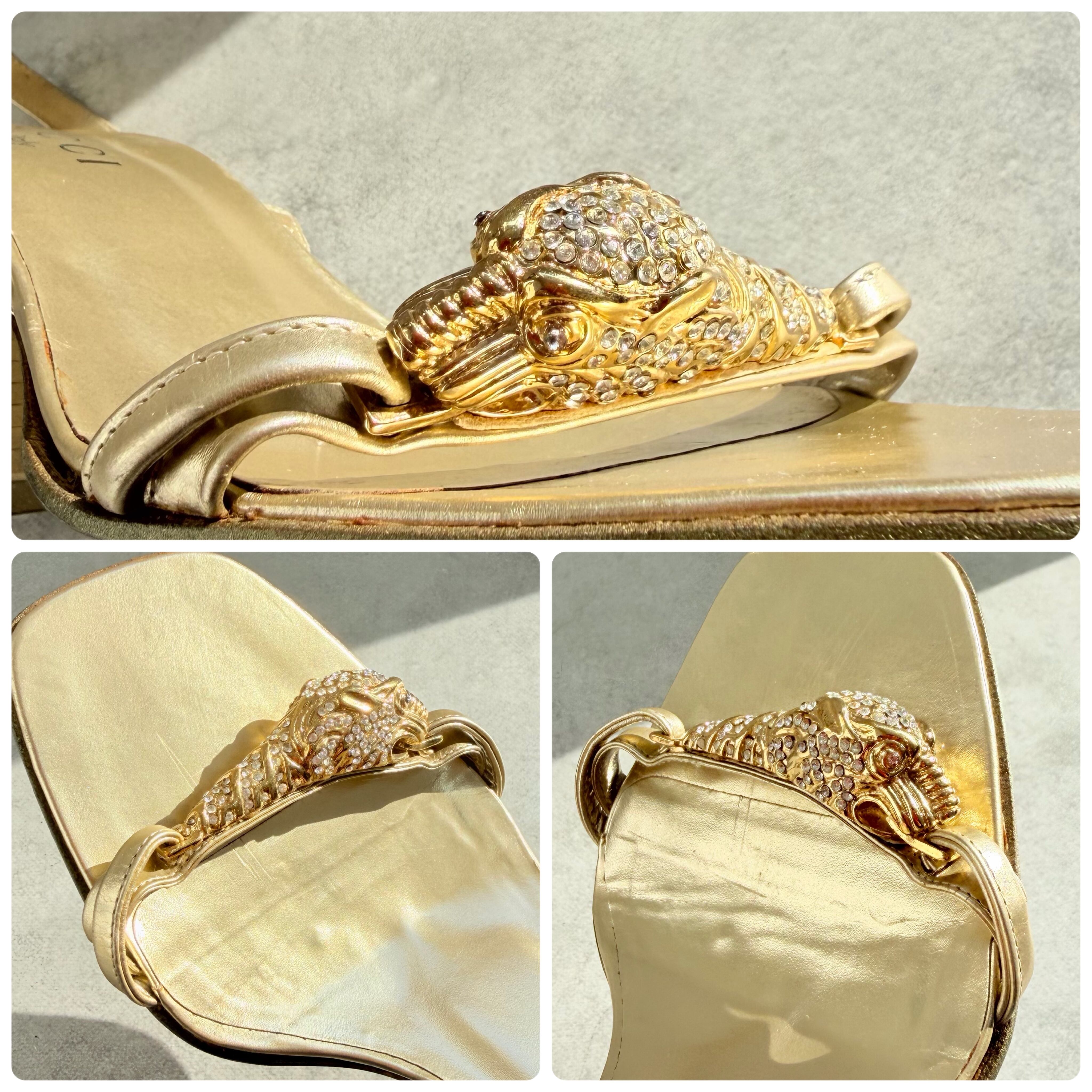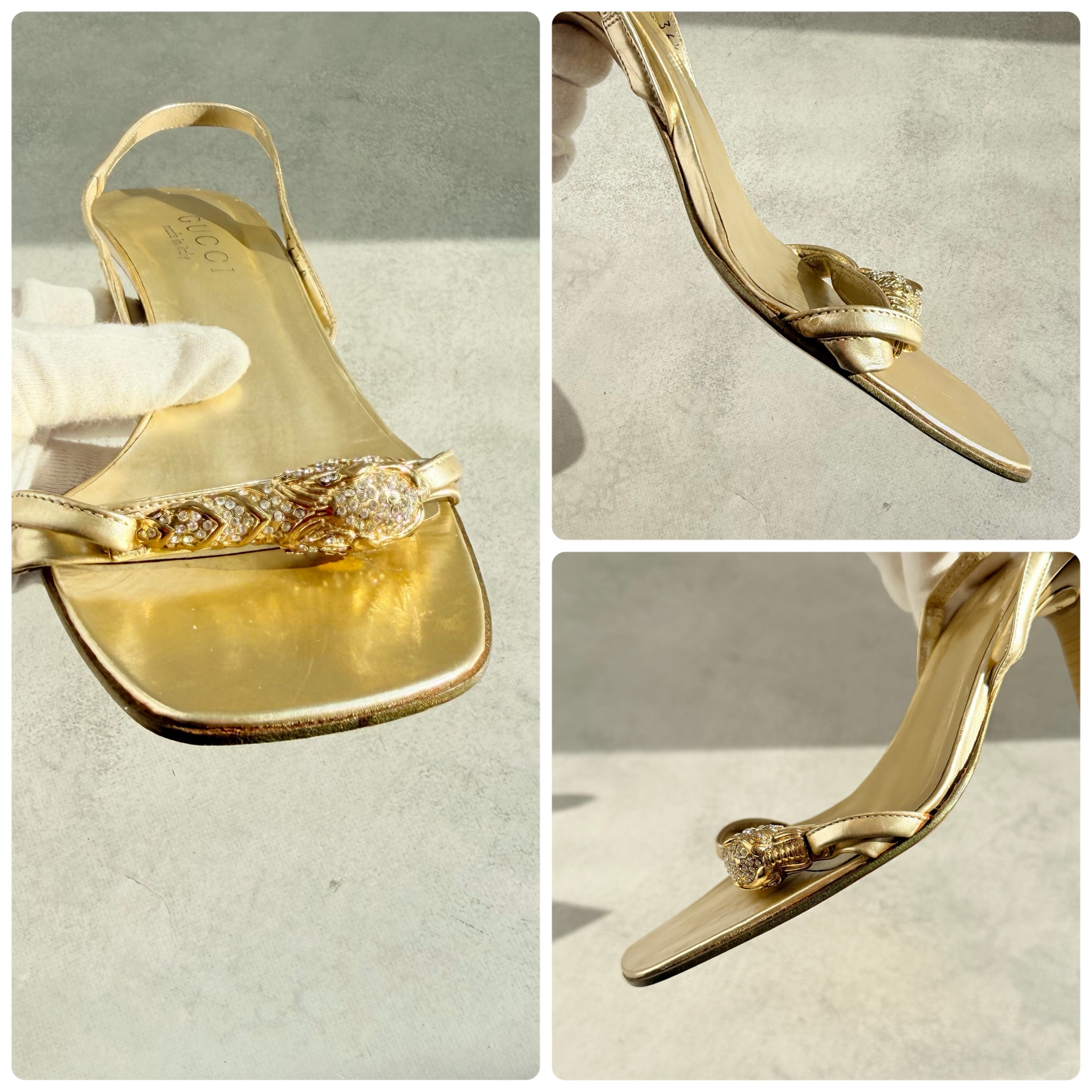 Gucci Gold Tiger Head Sandals 36 1/2