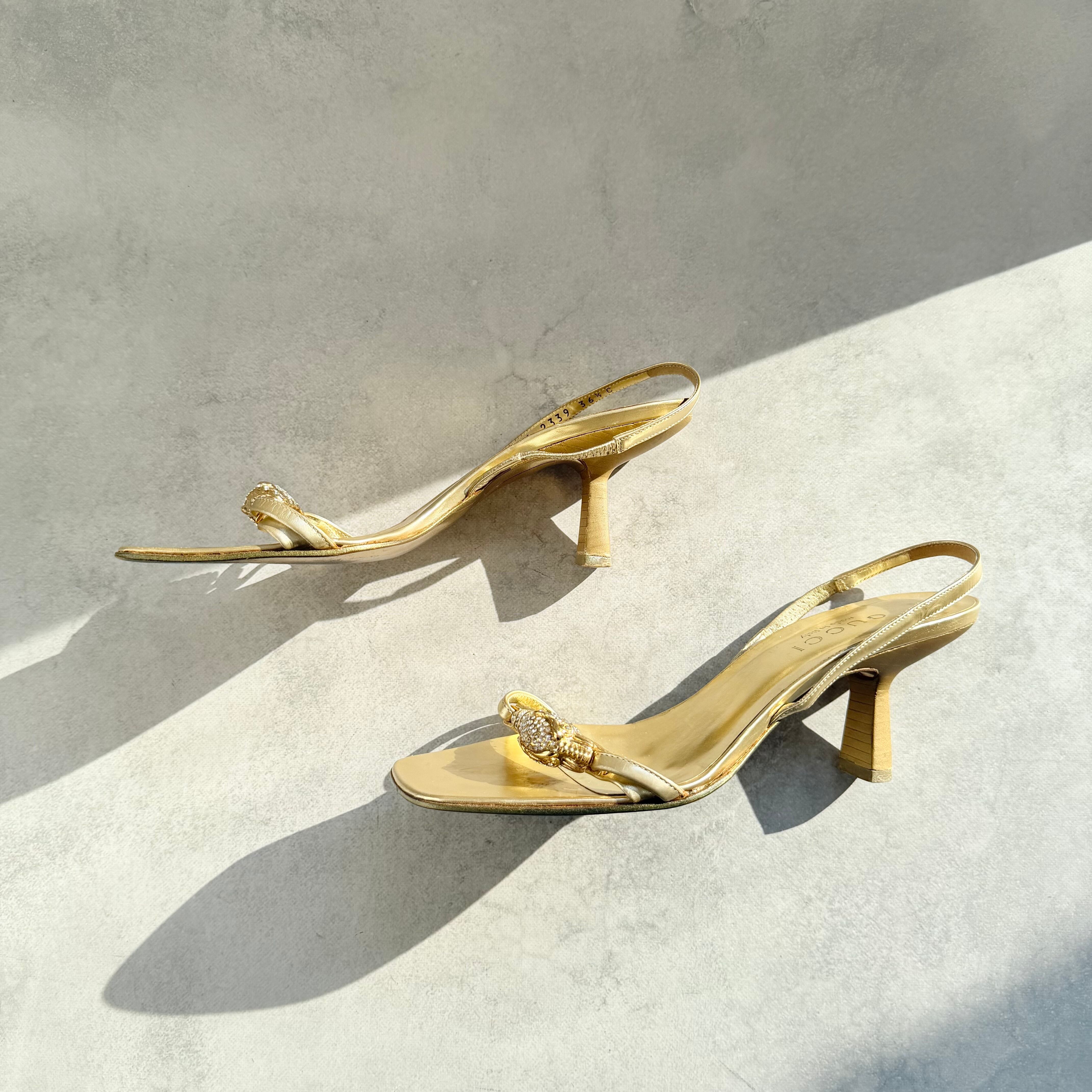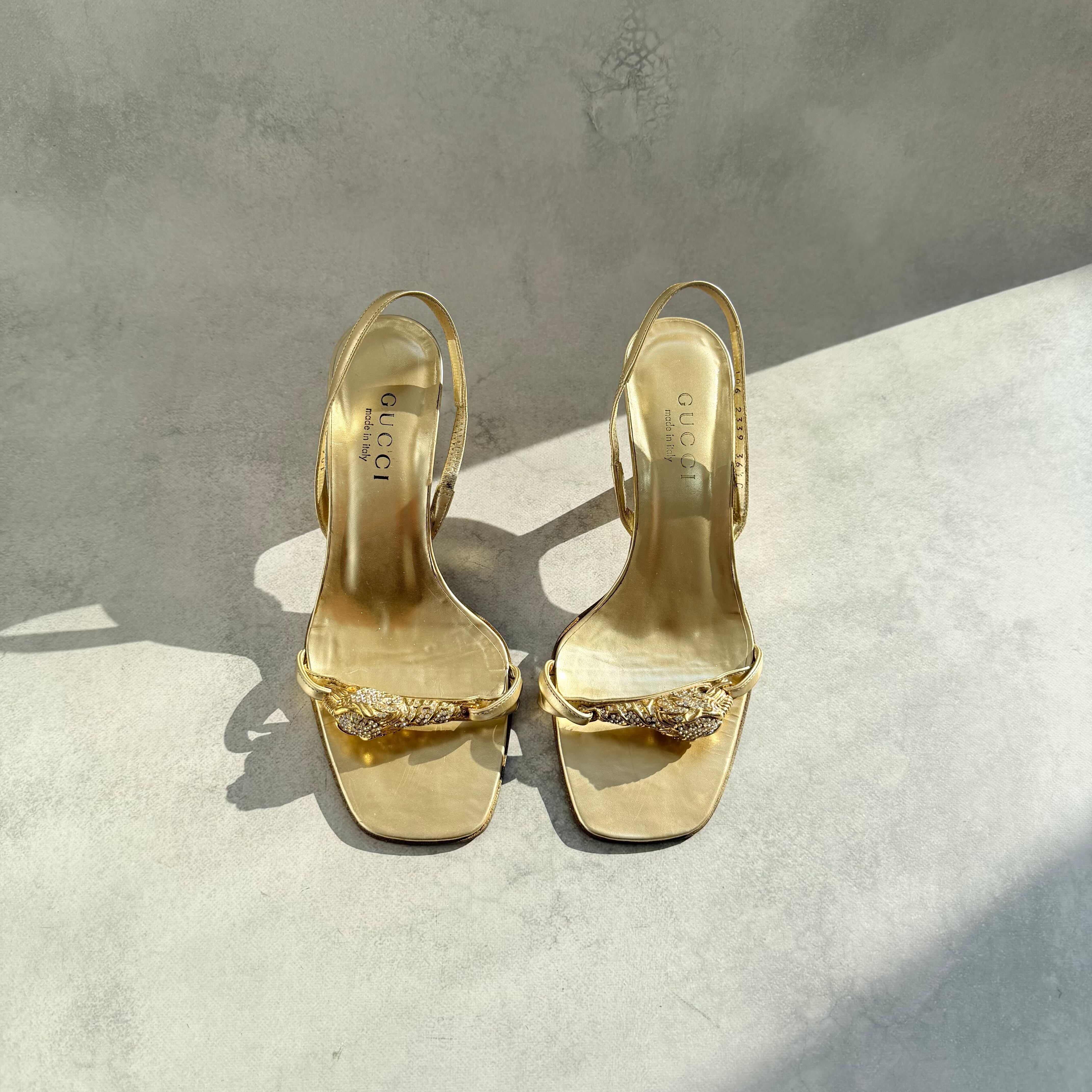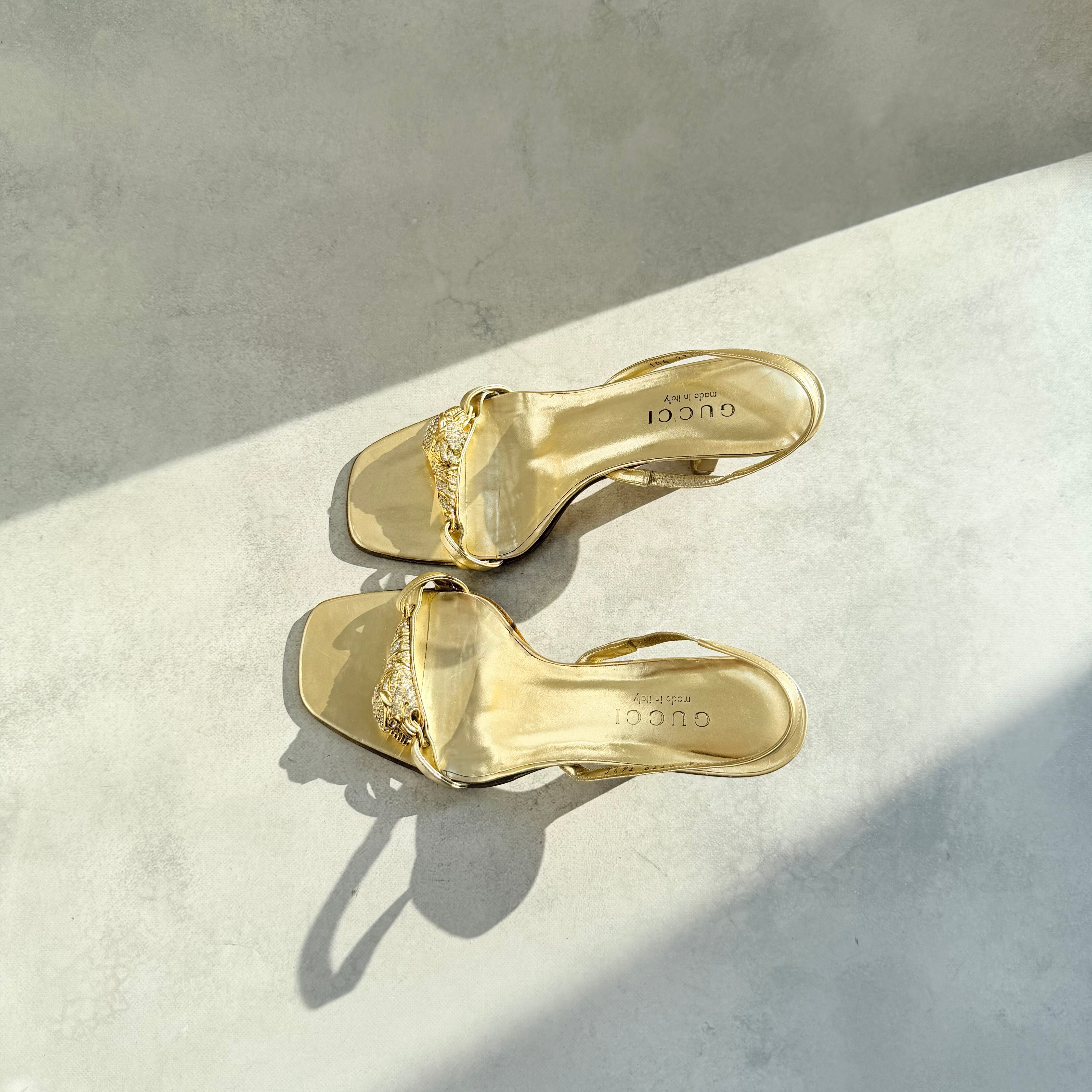 Gucci Gold Tiger Head Slingback Sandals