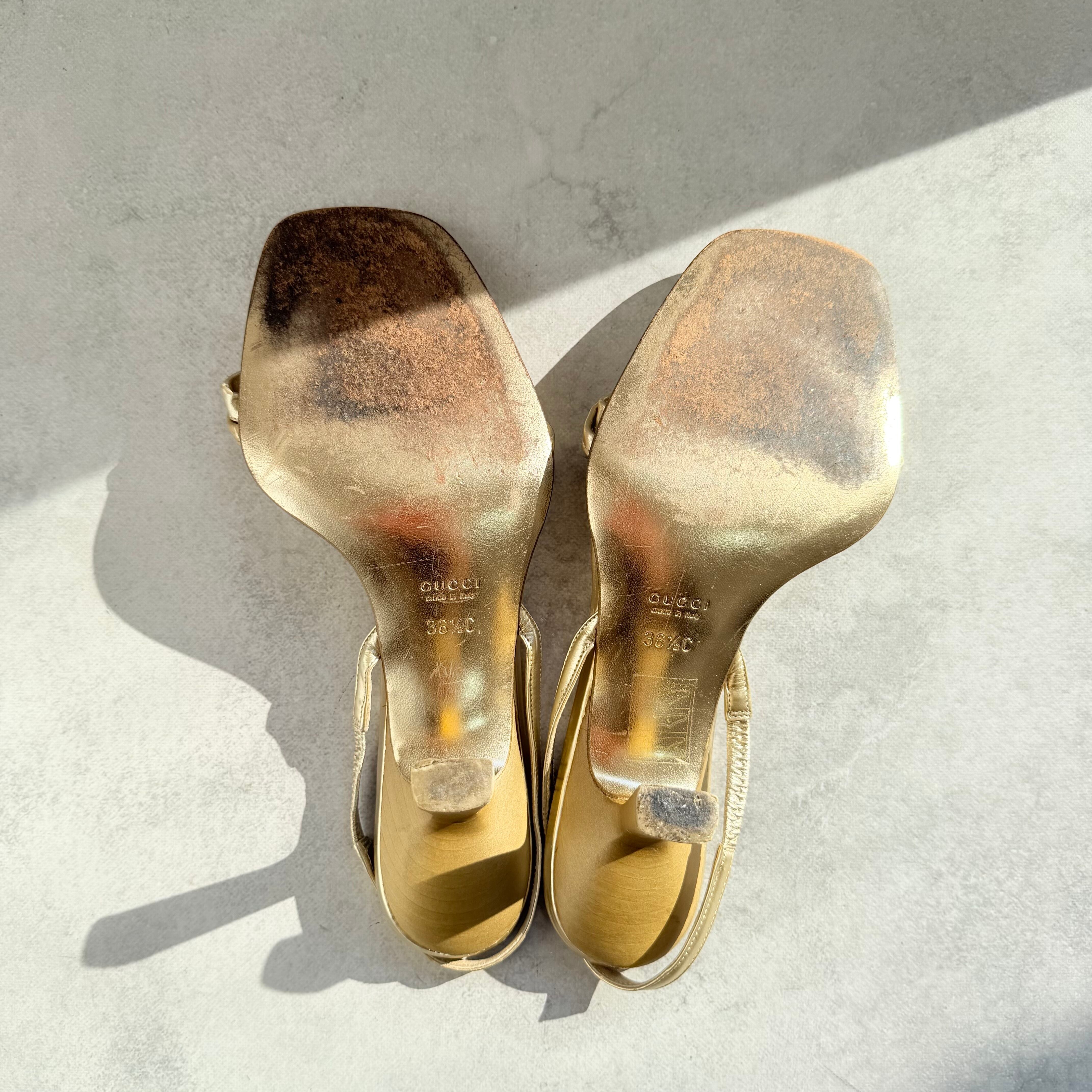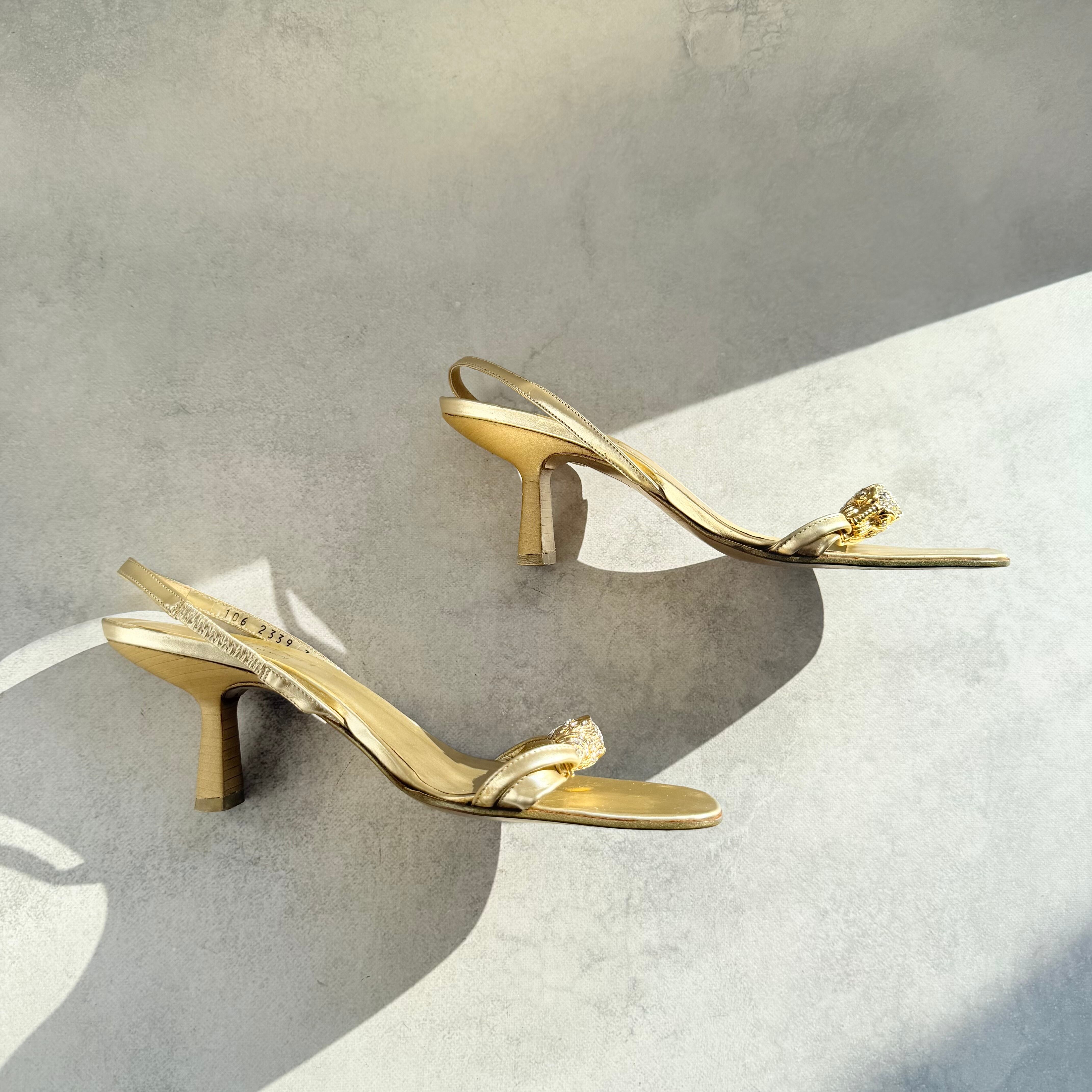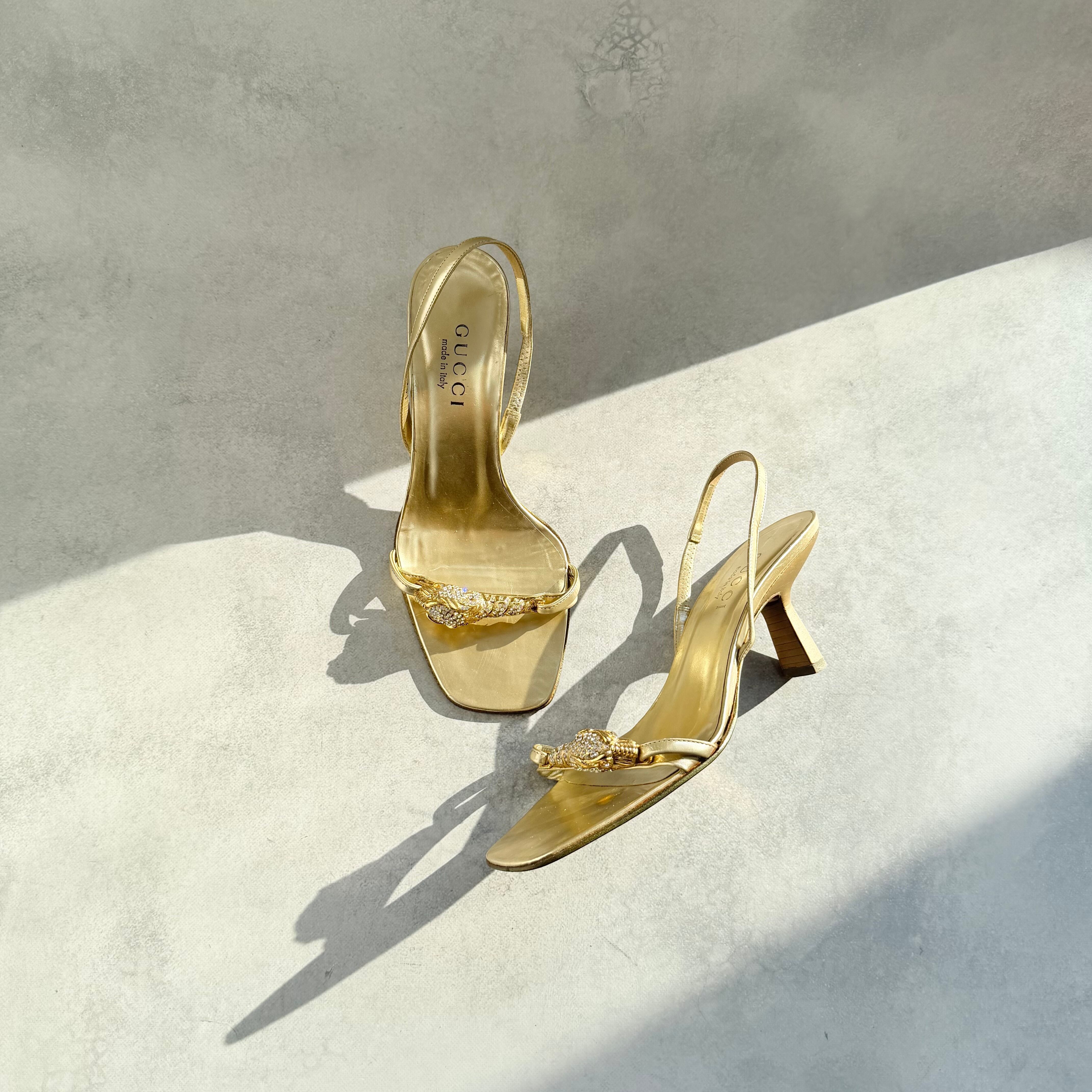 Gucci Gold Tiger Head Slingback Sandals