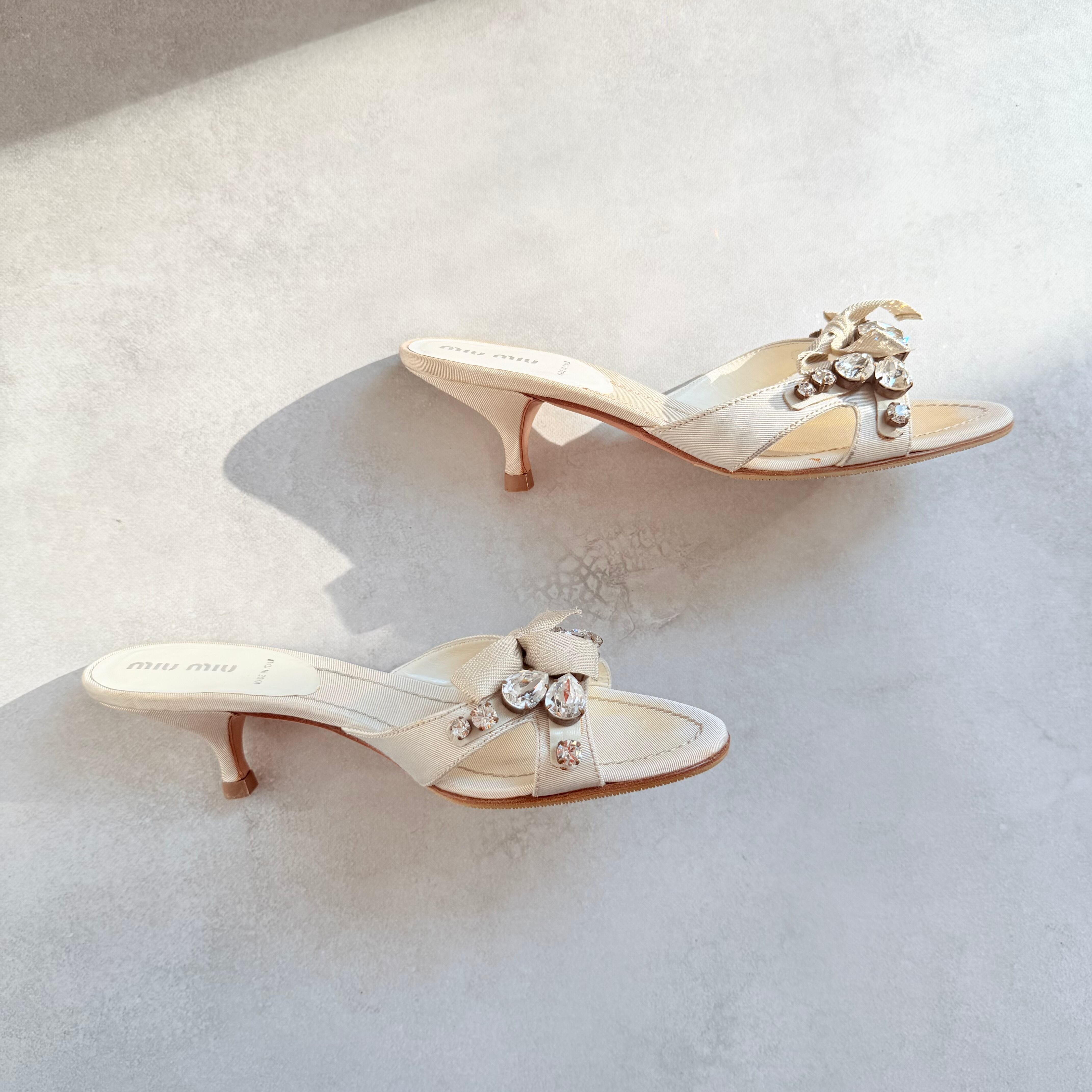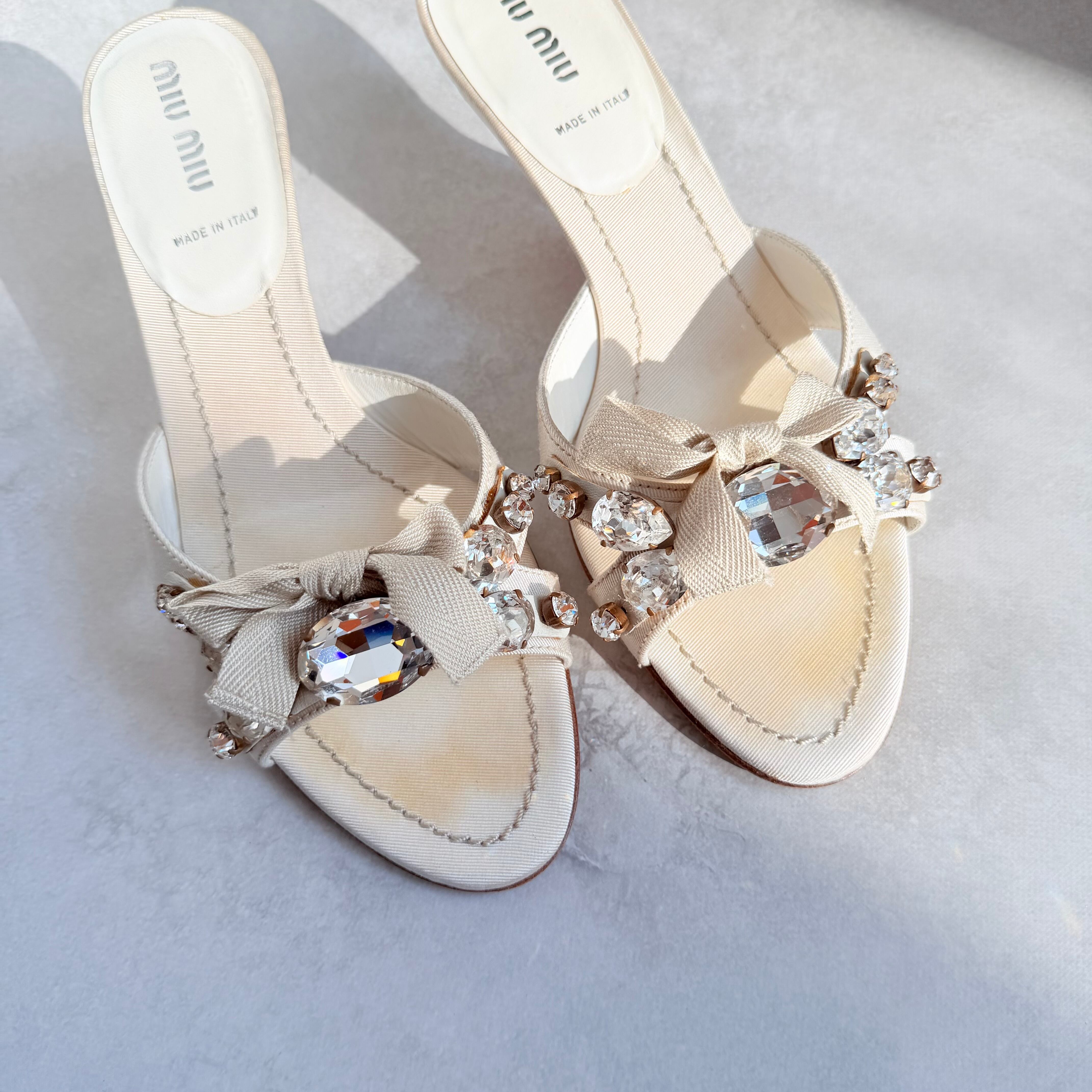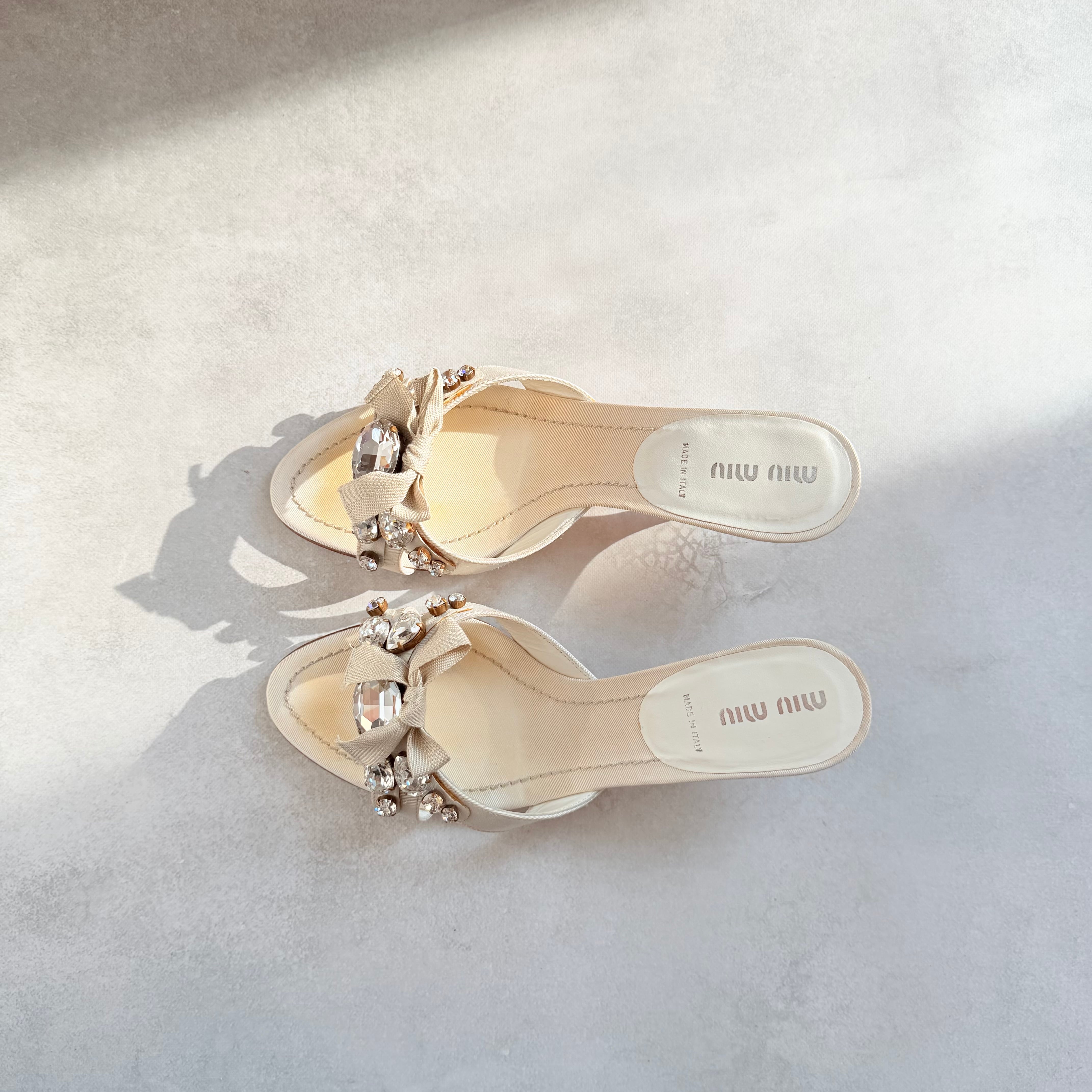 Miu Miu Crystal Bow Sandals 36 1/2