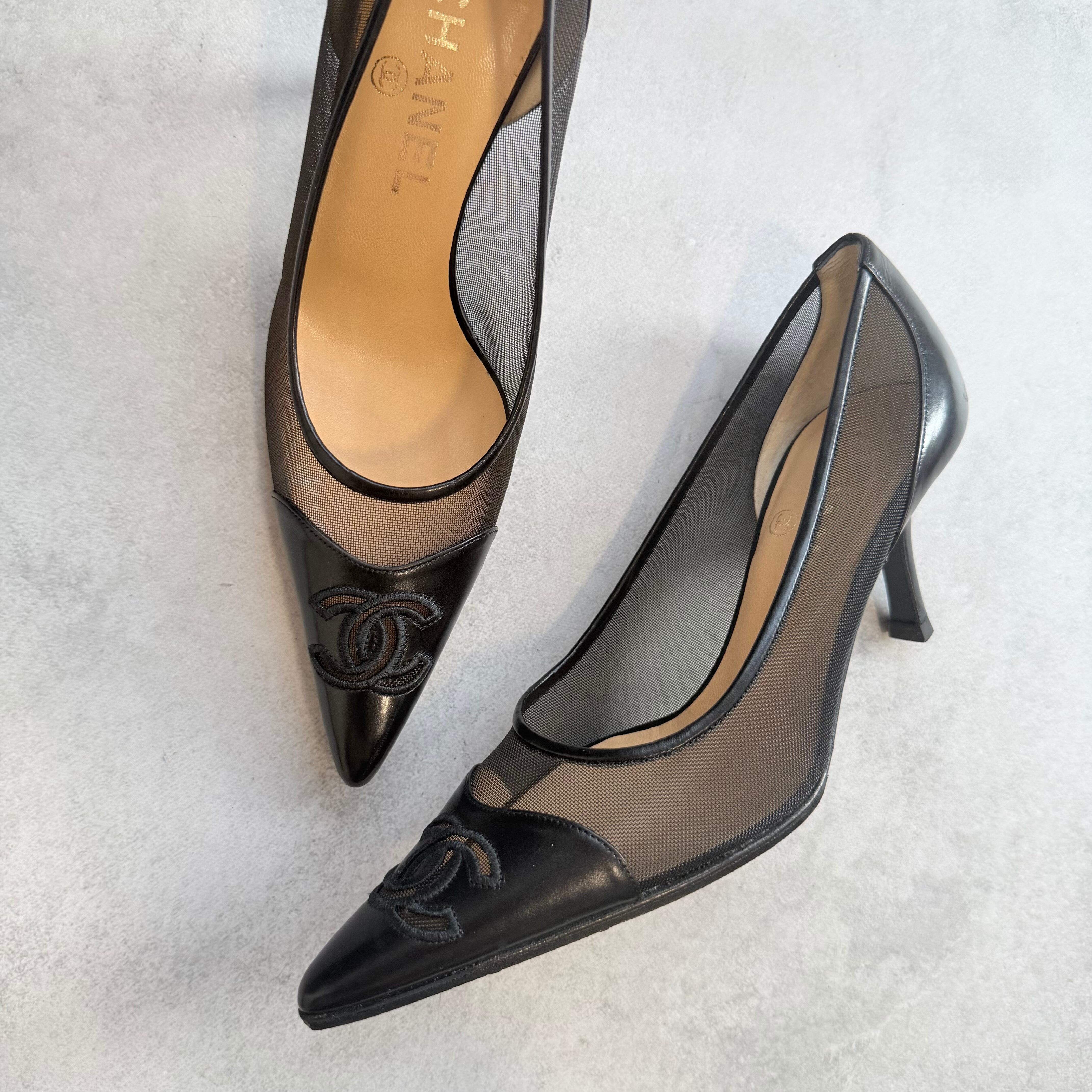 Chanel CC mesh black pumps 35 1/2