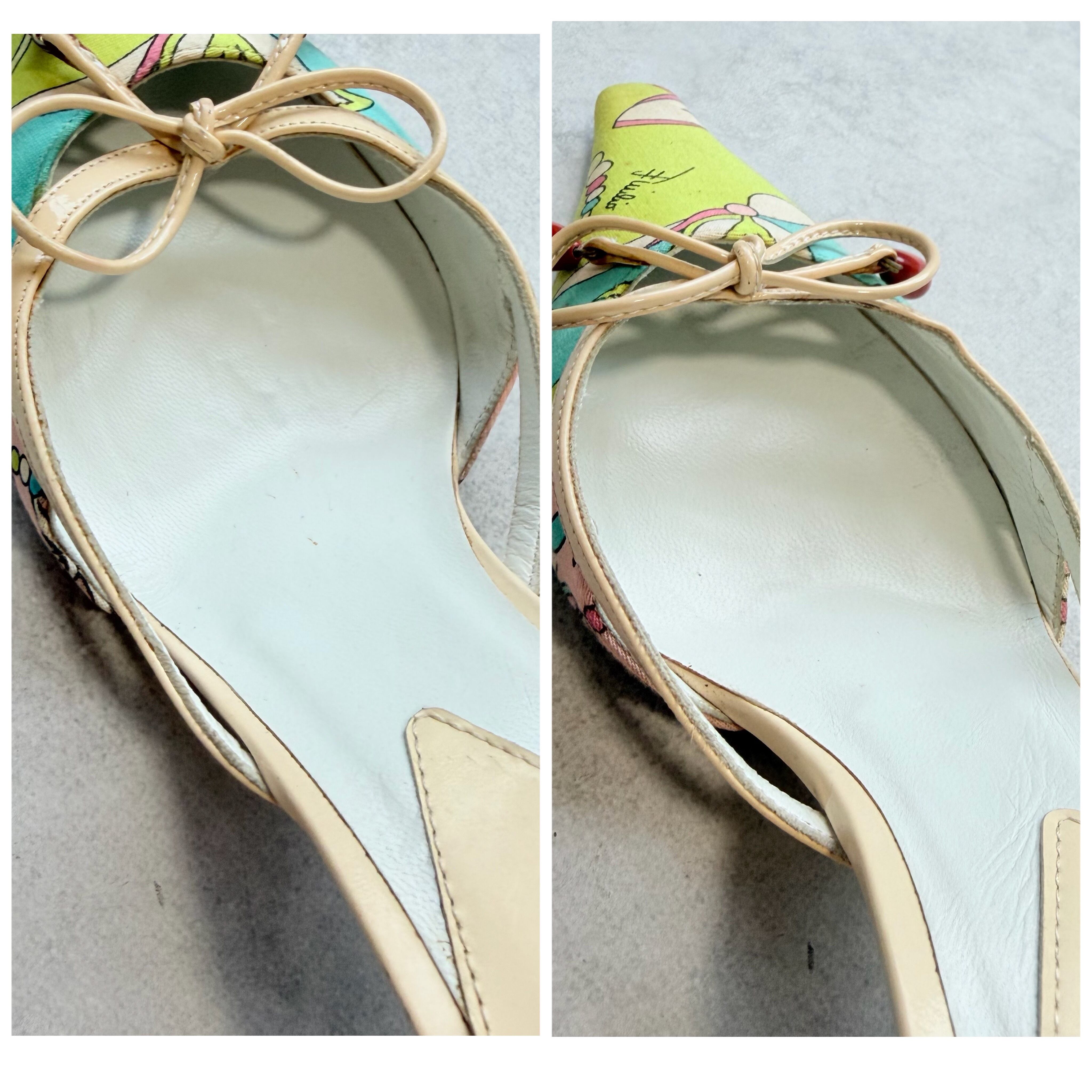 インソールかかと周りレザーやや浮き箇所ございますが完全には剥がれては無いです。また微細な汚れございますがベタ付きや匂い等無いです。